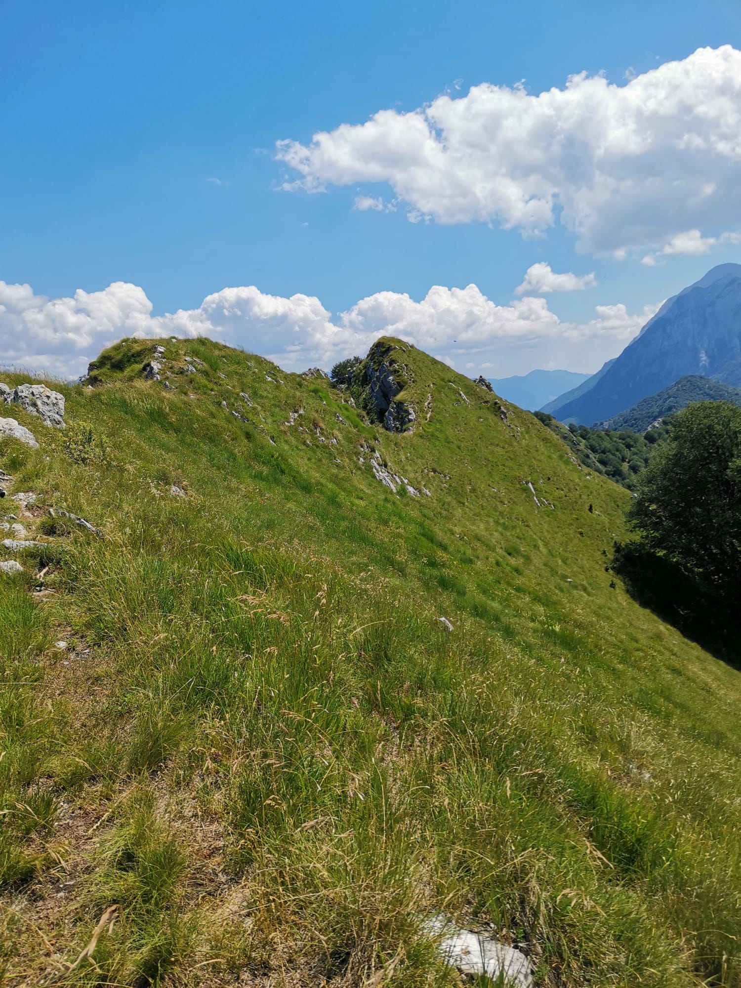 Di roccia cui appigliarsi ce n’è poca, e nella maggior parte del lungo percorso le mani vanno tenute occupate col cavo o con l’erba. L’esposizione è elevata e il terreno assai insidioso.