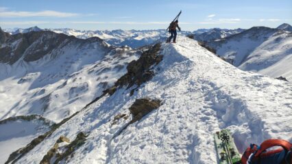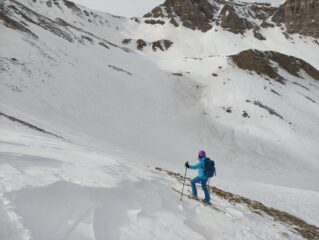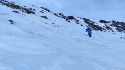 Percorso molto battuto . Progressione agevole sino a 2500 mt . Più in alto traccia dura e coltelli utili/necessari . Dal colle il percorso per gli ultimi 50/100 metri verso anticima è impegnativo se con gli sci , meglio ramponi . Una guida con gruppo ha fatto la cresta ed è sceso in traversata .
