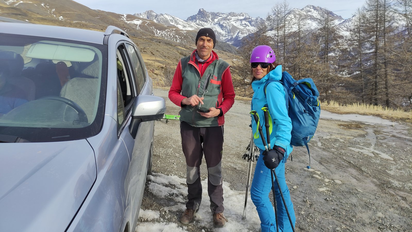 In 4 con Bruno , Francesca , ed Ilaria un saluto a ai simpatici Carlo e Lizzy incontrati sul percorso Una gita che non avevo mai fatto e che non mi ha deluso . Dopo interminabile viaggio da Genova alle 10 calziamo gli sci su