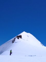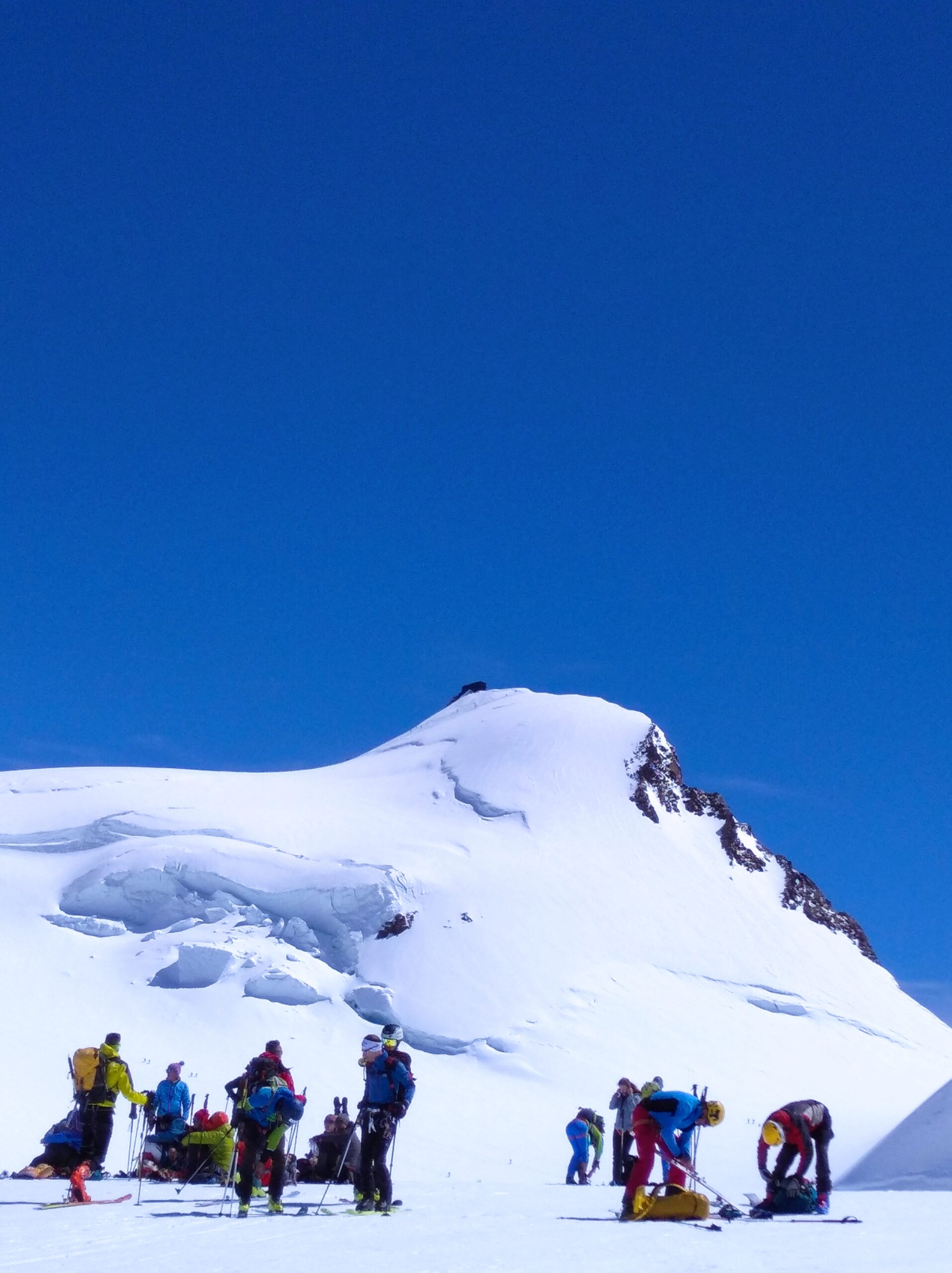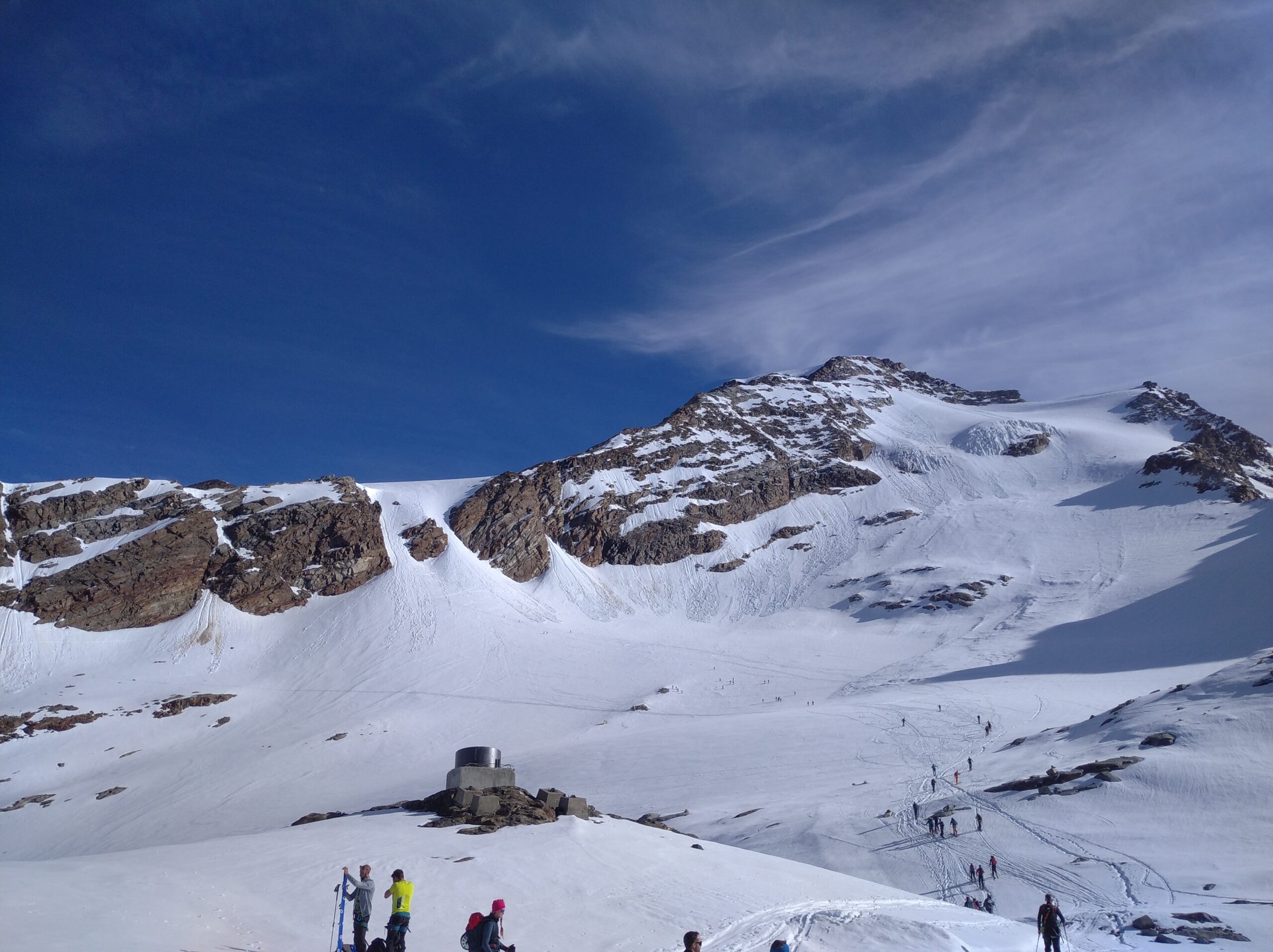 Puntavo a Parrot piu corno Nero, visto che ero da solo, l’affolamento generale ed il caldo mi sono limitato alla Parrot, cosi ho anche fatto una sciata decenet fin al rif Gniffetti, poi era tutta pappa molle, specialmente nel canale.
