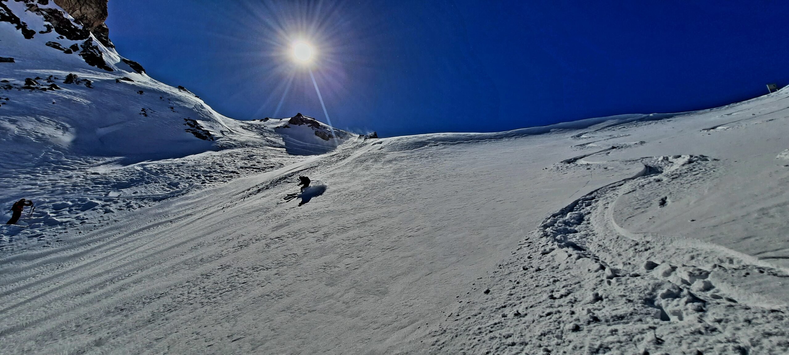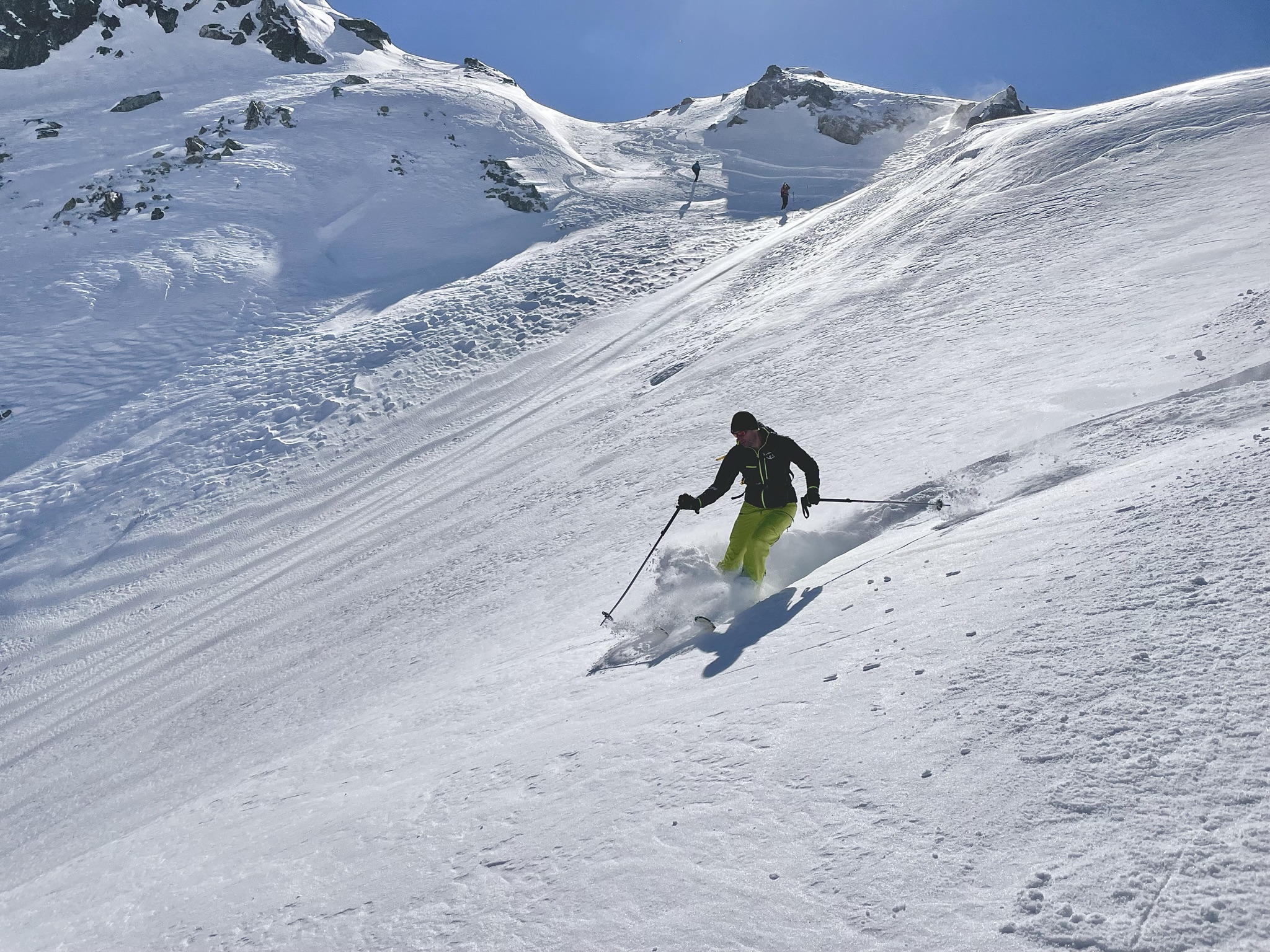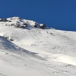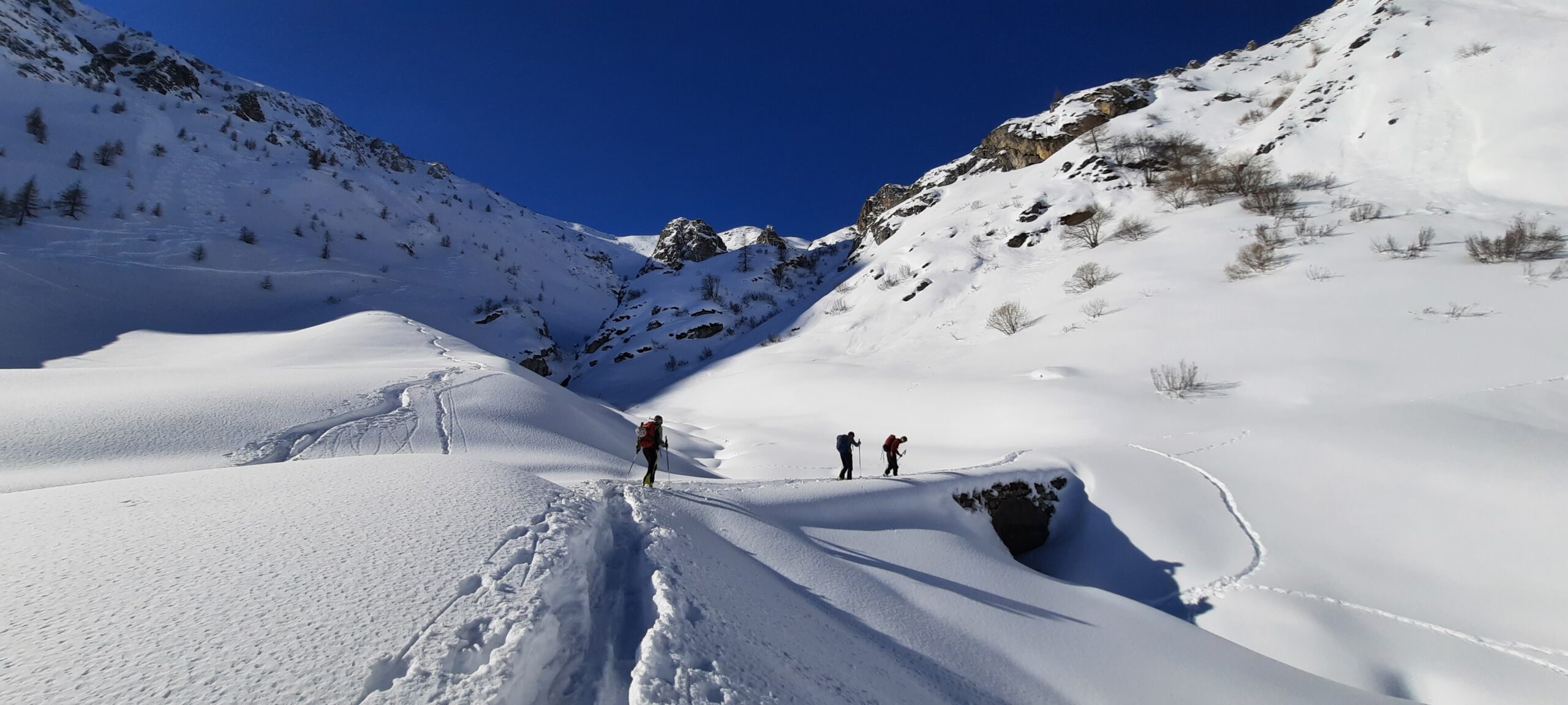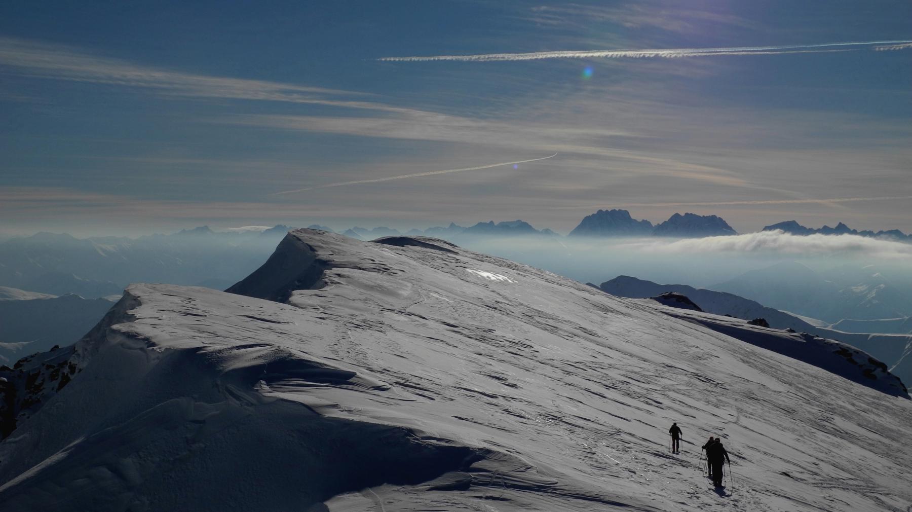 Dal colletto, lasciati gli sci si segue il pendio di erba e rocce fino in cima.