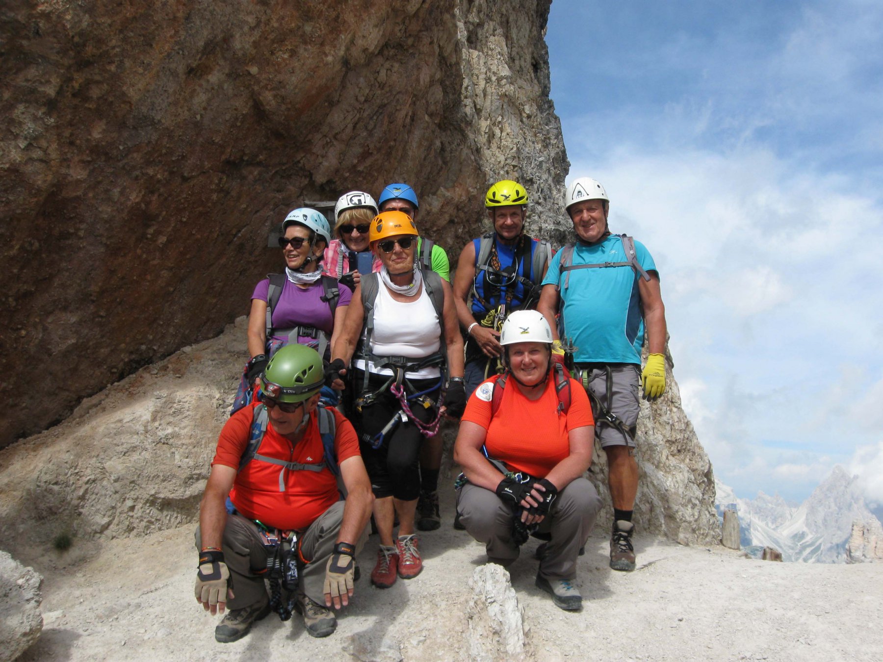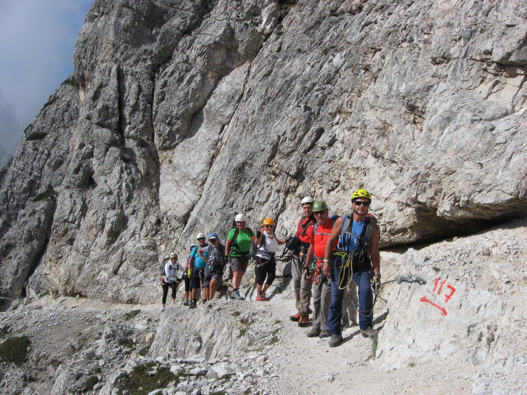 3° giorno ) 4-09 gruppo A Ferrata del Paterno e sentiero ferrata delle Forcelle, Dal Rif. Auronzo, in un ambiente bellissimo forse uno dei più suggestivi dell’ intero complesso dolomitico di Sesto, che attraverso un sistema di gallerie e trincee di guerra, la ferrata Innerkofler percorre per 200 m. la spalla del monte Paterno fino alla forcella del Camoscio, per poi continuare per il sentiero ferrata delle forcelle, fino a raggiungere il Rif. Pian di Gengia.