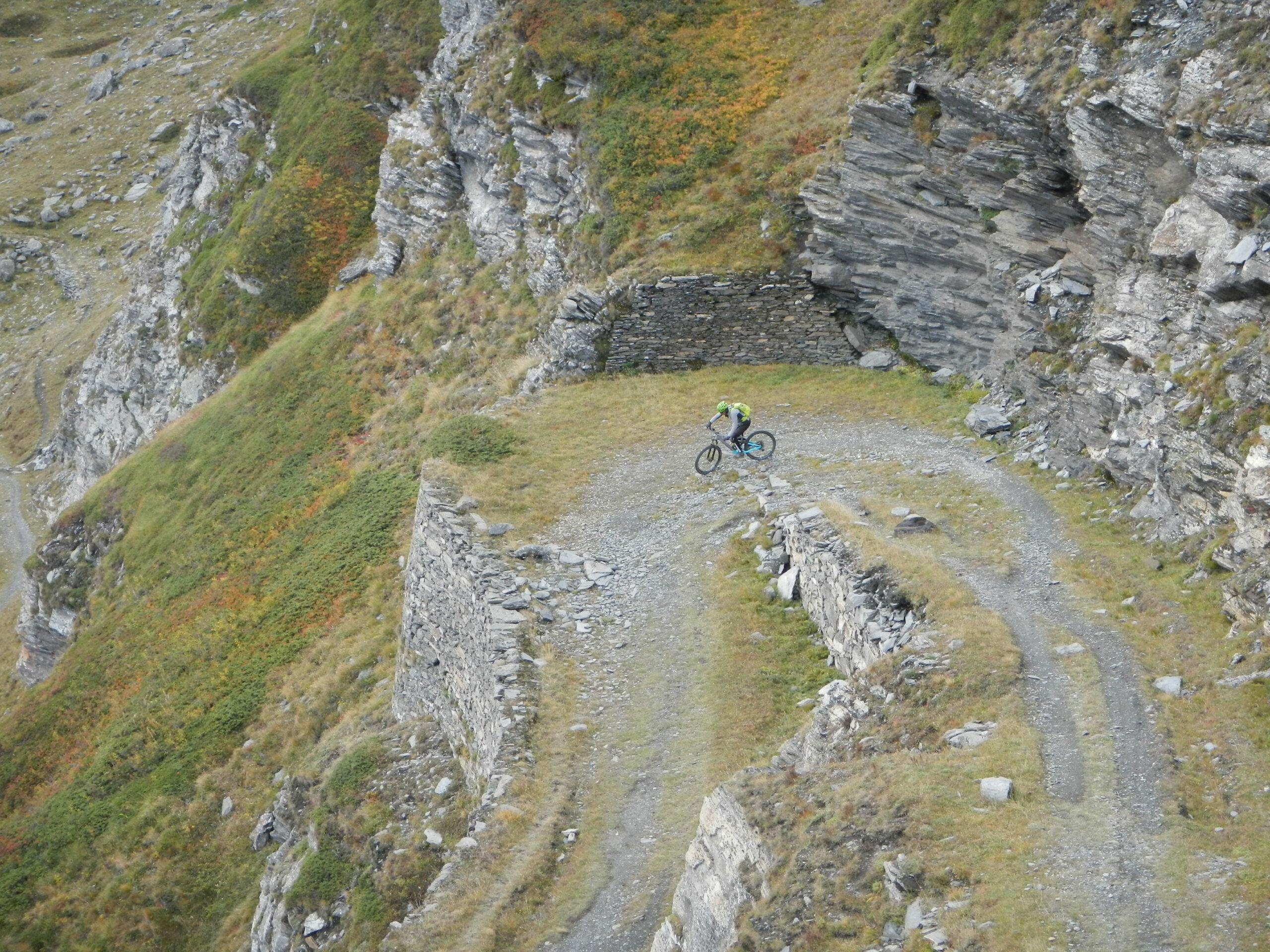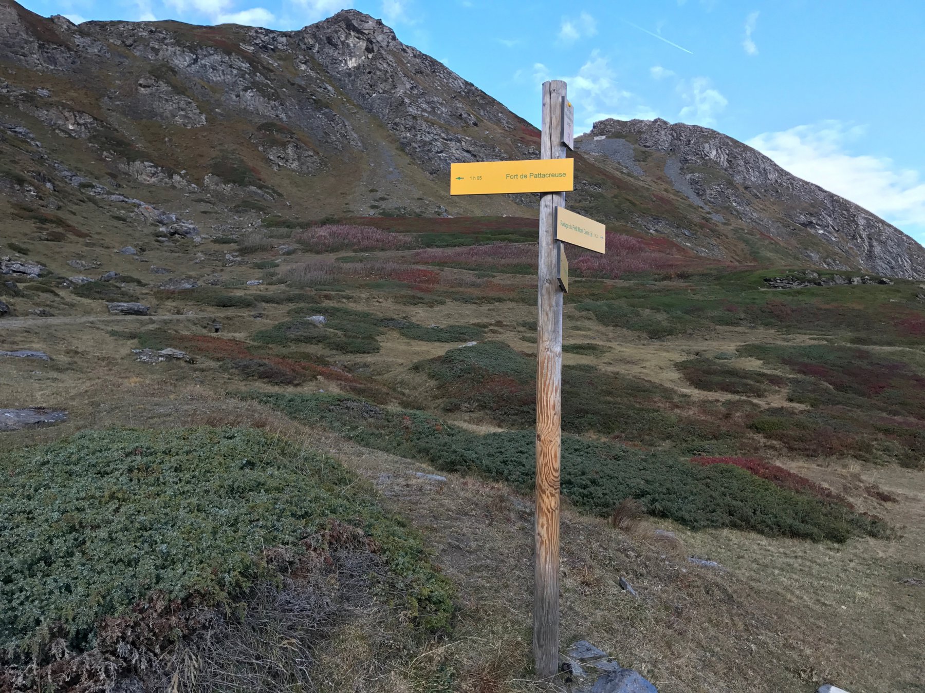 Dai ruderi del villaggio Grand Croix alla base della Diga del Moncenisio, si prosegue sullo sterrato che sale al Forte Variselle e poi, tralasciando il percorso che sale al Monte Malamot, si costeggia il Lago del Moncenisio fino a trovare, sulla sinistra, la strada militare che sale agevolmente, con una bella serie di tornanti, all’Ancien Fort de Pattacreuse, costruito nel 1889. Ancora ben visibili le numerose trincee e le varie torrette di quello che fu un importante avamposto di artiglieria.