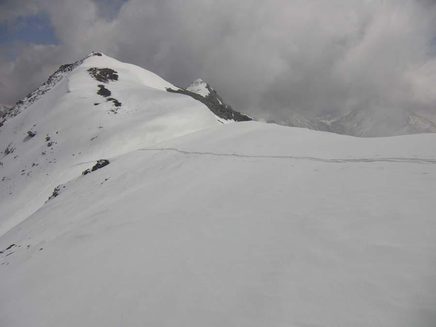 (Da questo punto è posibile salire direttamente alla spalla NW della Pierre Menue – OS, tratti a 35°).