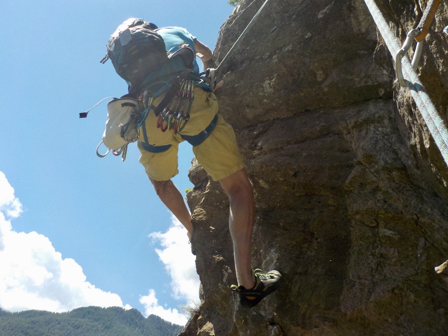 Torniamo sulla fessura obliqua stamattina per un mordi e fuggi Mauri d’accordo. Arrampicata breve ma interessante, ricuperata dall’abbandono dopo notevoli lavori di pulizia e da abbinare a una via della parete superiore (Via del ragno con variante che aggira il tetto oppure con la Michelin – Carignano, uscendo poi sulla Mon Ton dopo il secondo tiro)