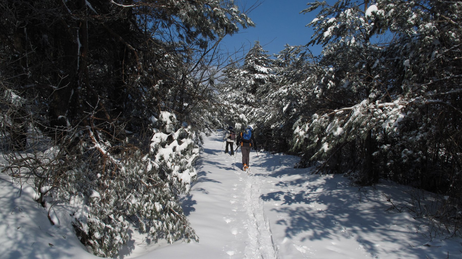 Rimesse le pelli si risale sulla vetta della Roccianera (mt. 878) da cui si scende il versante est alla fine del quale ci si riaggancia alla rotabile sotto il Pavaglione, che può essere nuovamente risalito.