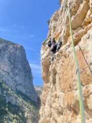 Via bella, con roccia particolare. Chiodatura a spit, con presenza di cordoni di allungamento e uso di clessidre. Una nuova via meritevole di ripetizione.