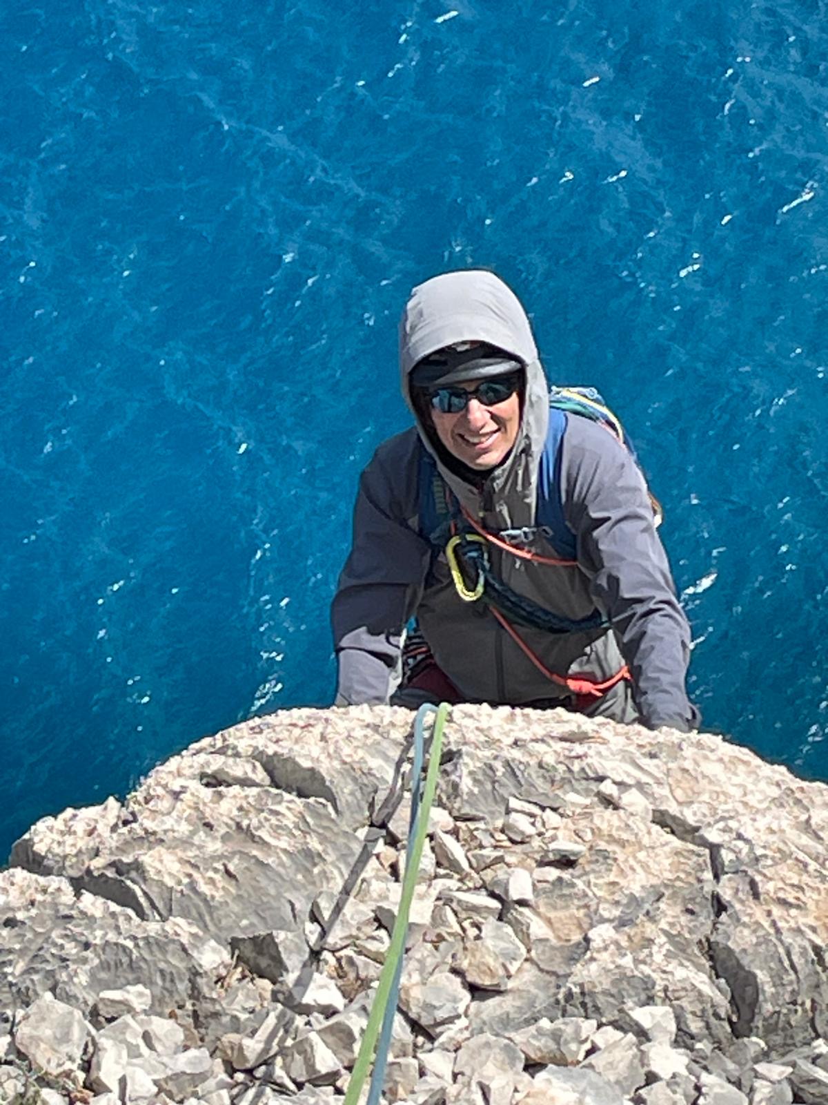 Via con una roccia incredibile e una bellissima linea che porta in vetta. I primi due tiri di traverso sono un ottimo inizio del “viaggio spettacolo” che regala la via. Sicuramente una via da non perdere, anche con il vento “patagonico” di oggi.