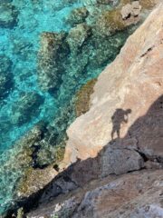Per l’ avvicinamento risalire davanti al piazzale del ristorante una traccia di sentiero che sale per qualche metro e poi scende verso la scogliera (tenere sempre la ds scendendo). Arrivati sul bordo ultimo del sentiero, reperire una sosta a spit e calarsi sulla scogliera lambita dal mare. Puntare a un cordone rosso e iniziare con due tiri di traverso.