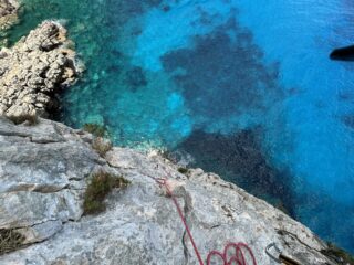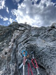 Il primo tiro molto bello e non difficile, secondo tiro ho trovato non banali il piccolo brevissimo traversino e un pezzo di placca, terzo tiro facile e quarto pure entrambi brevi! Siamo saliti in cima e scesi senza fare doppie Capellando ogni tanto la via di ritorno