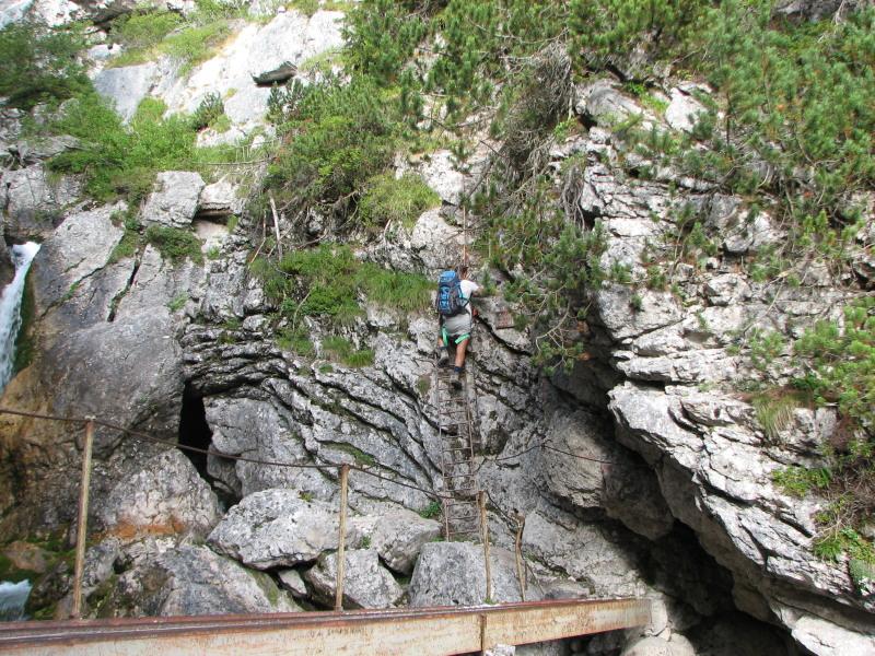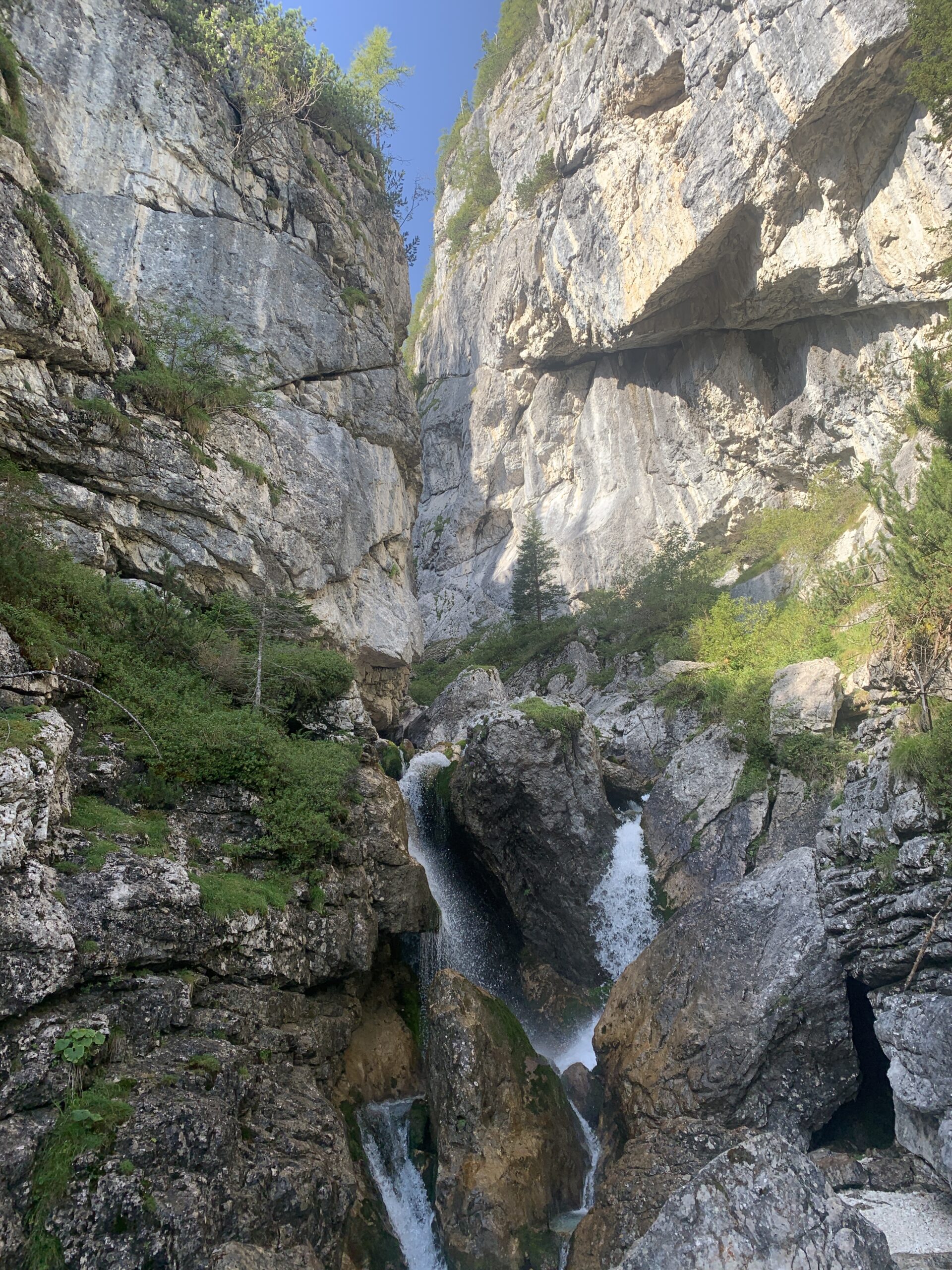 Si prende il sentiero 704 e superate le cascate si trova una prima corda fissa, subito dopo con un ponticello e una scaletta inizia l’ orrido che prosegue per sentiero e tratti attrezzati fino al pian delle comelle che si raggiunge dopo circa 1.30 h dal parcheggio. (NB si supera anche qualche lingua di neve).