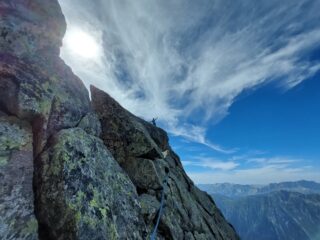 Segnalo la presenza di una sosta a spit in cima al tiro di 6a, cosa che può fare molto piacere al secondo di cordata!