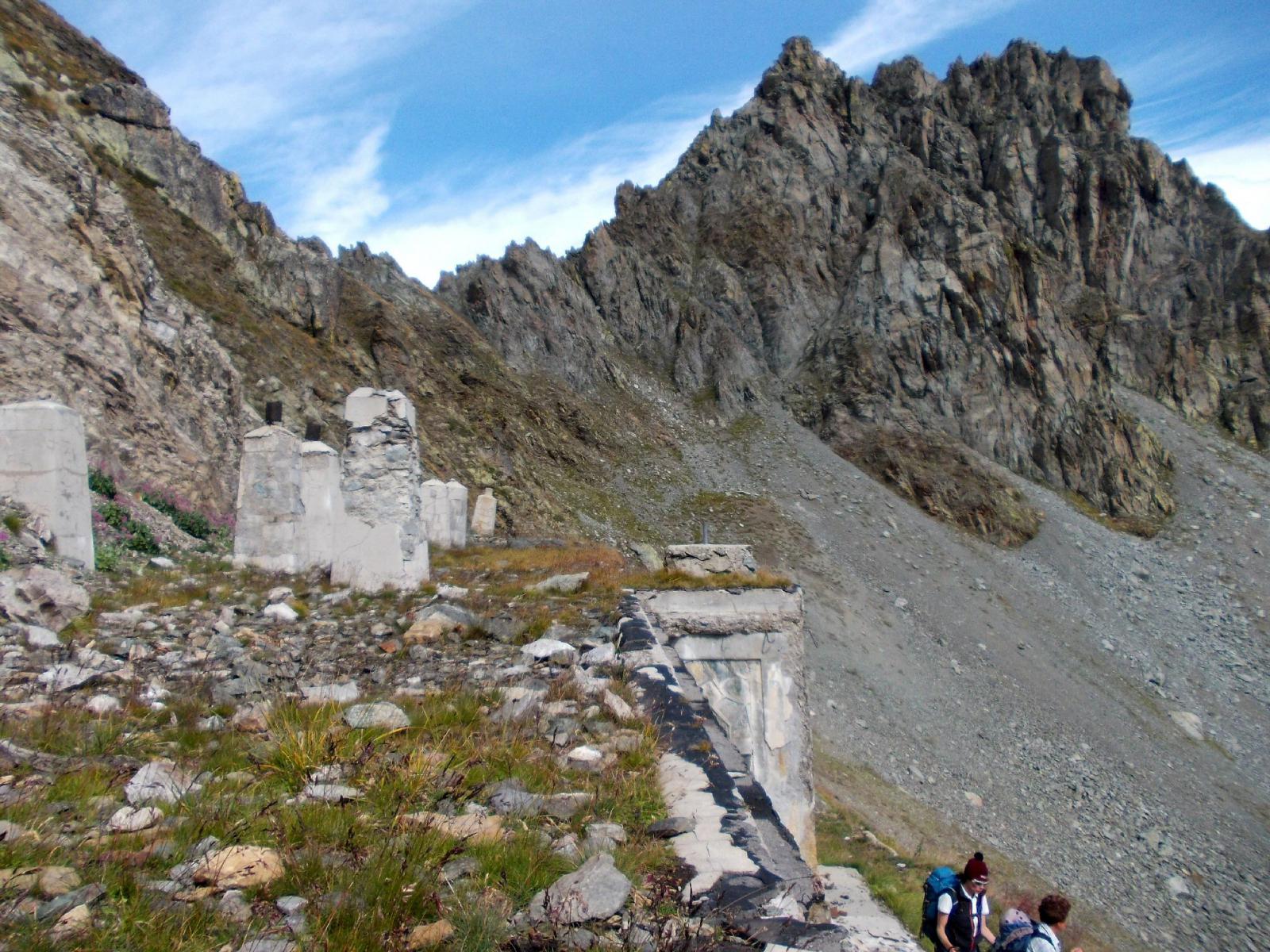 Discesa sul lato ovest su ottimo sentierino lasciando un bunker sulla sx e riprendere il GTA poco sotto il colle di Stau che con innumerevoli svolte passando nei pressi di una casermetta prima e il Gias di Stau poco dopo con innumerevoli svolte porta a chiudere l’anello di poco a monte dei Prati del Vallone che si riguadagnano ripercorrendo nell’ultimo tratto la carrareccia percorsa in salita.(1.30-2h)