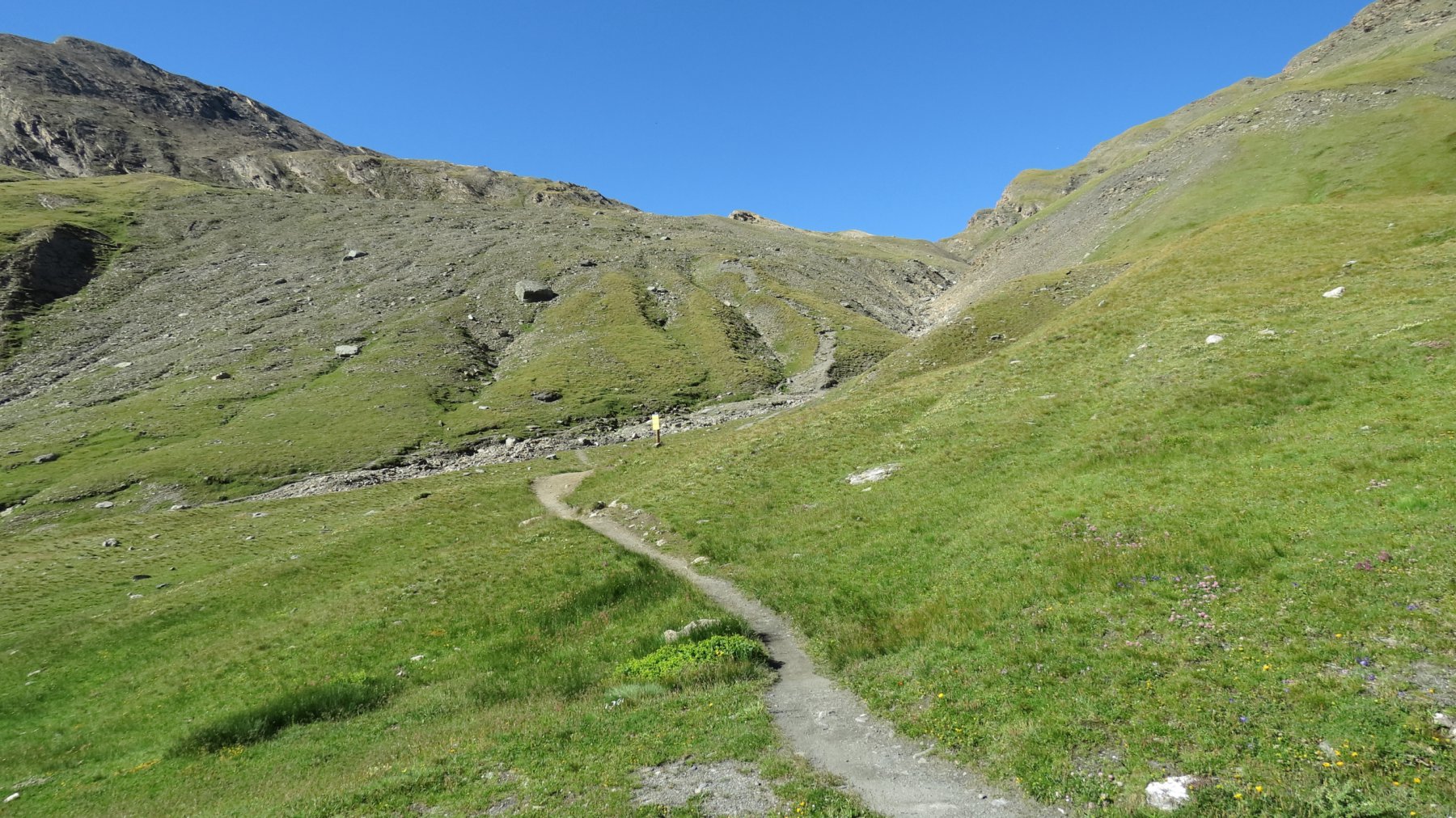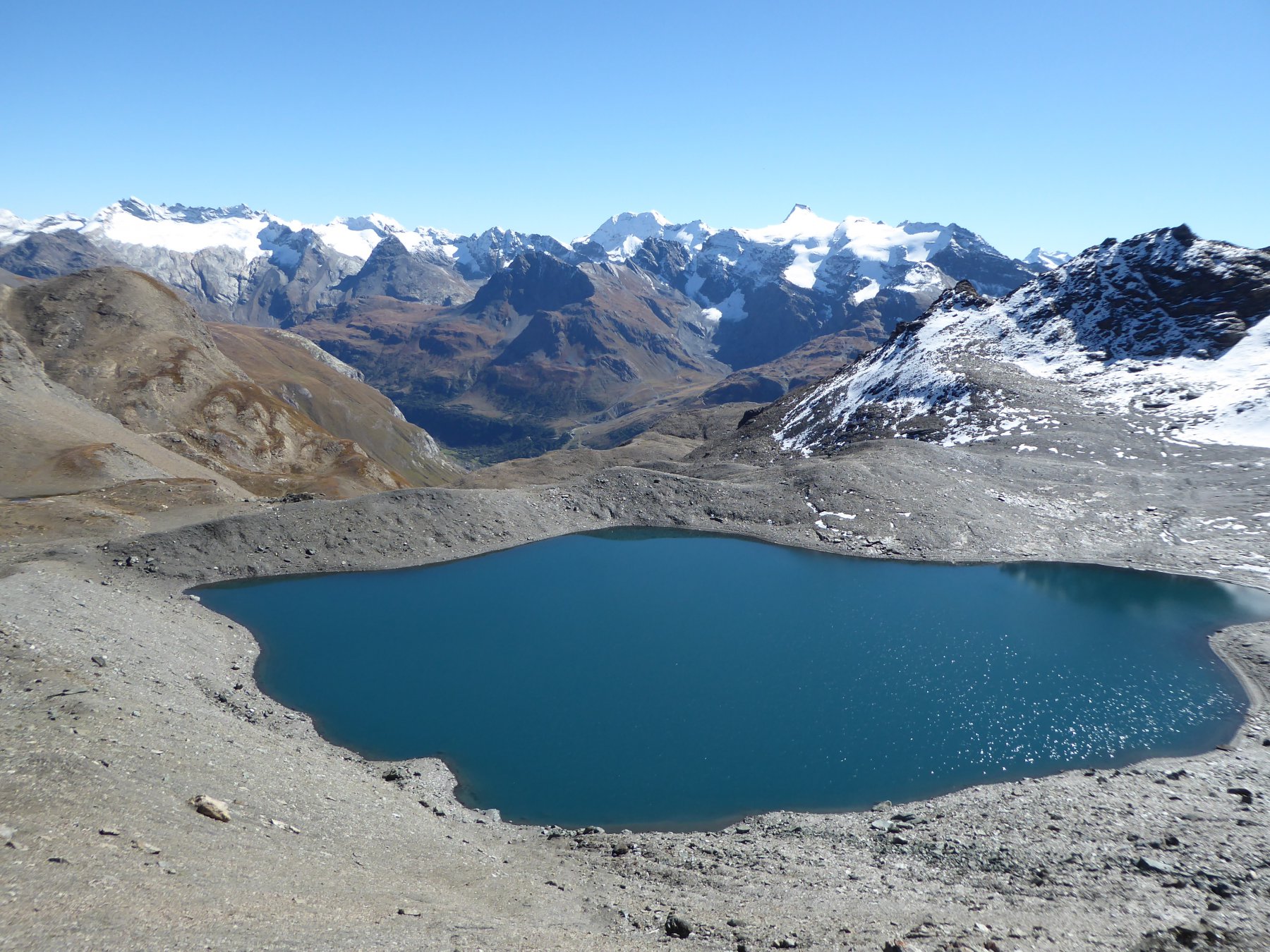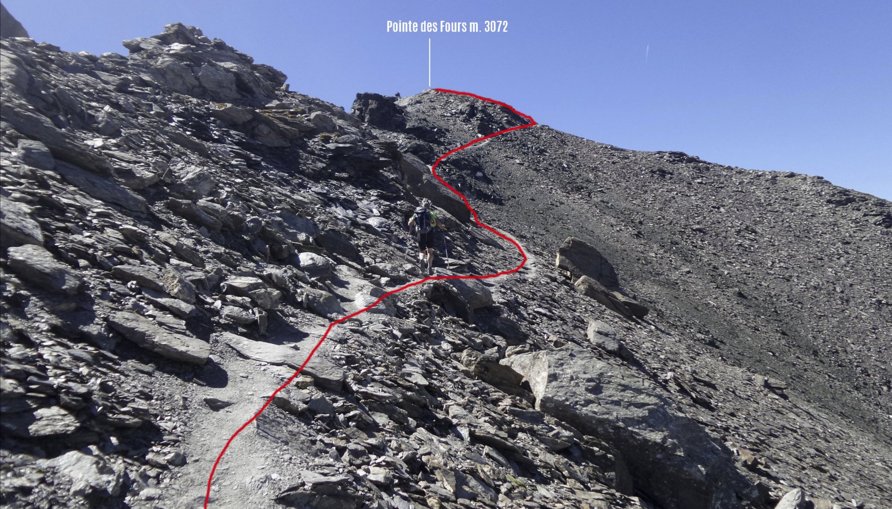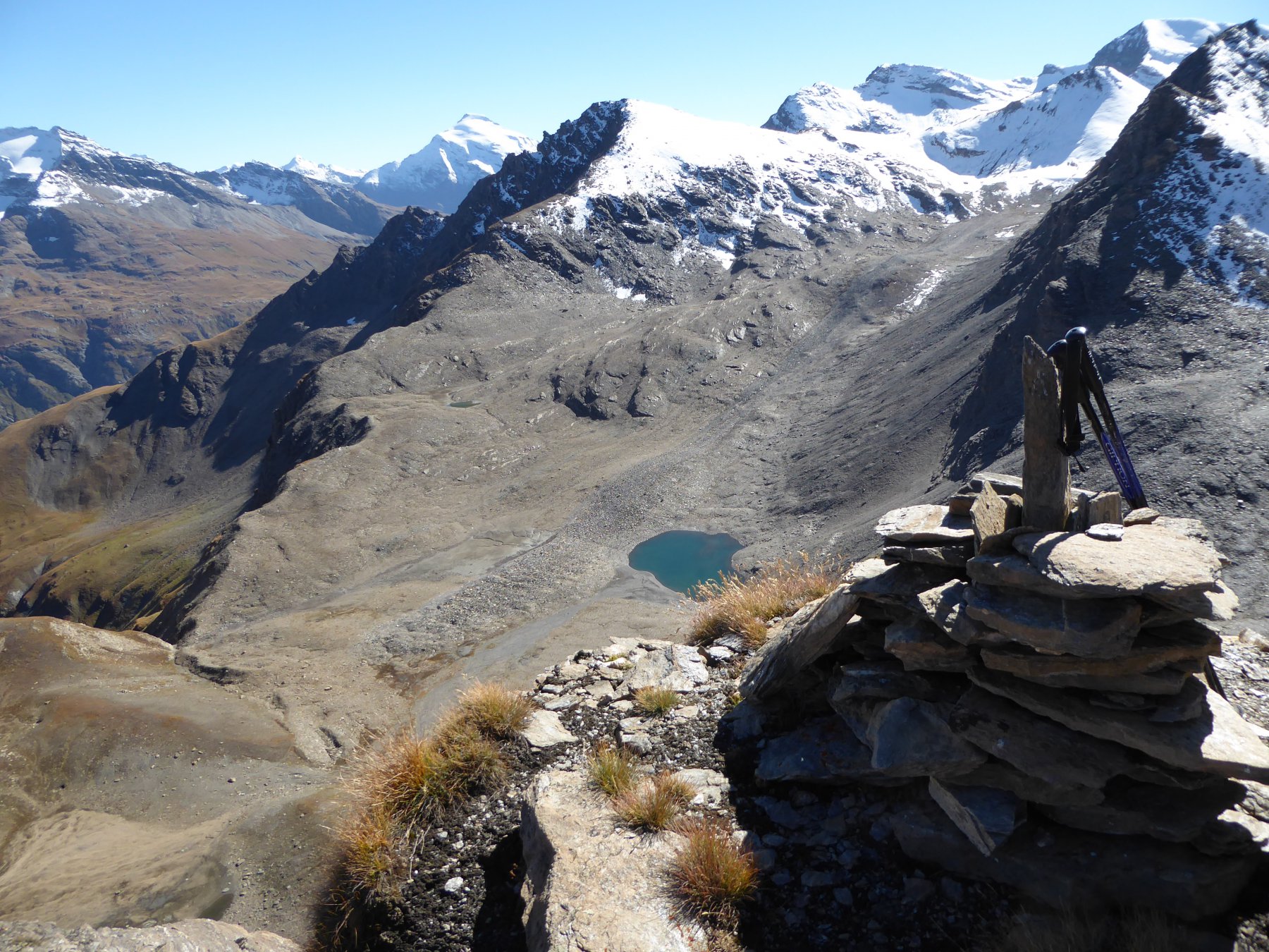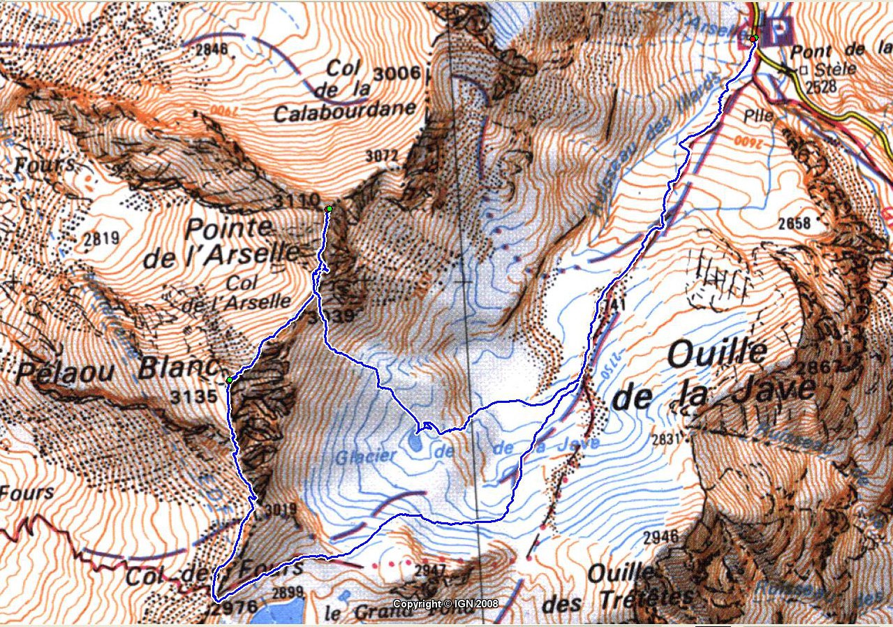 Dal pont de la Neige,seguire il sent.con palina per il col des Fours 2976 m 1.40 min(con passo non velocissimo 1 oretta circa)passando a sx di un laghetto in fase di riduzione idrica,un pendio un pò più ripido porta ad una selletta da cui è già visibile il colle caratterizzato da un ometto di enormi dimensioni,mentre sulla sx è ben visibile la Pointe nord De Bezin.10 min circa si arriva al colle spartiacque col vallone des Fours,in 45’di discesa si arriva all’omonimo rif. 2537 m.non visibile dal colle.Si volge a sx su buona traccia appena sotto la cresta e in circa una ventina di minuti si è sulla Pointe des Fours 3072 m.appena a nord della Bezin.Ritornati al colle si prosegue nella direz.opposta verso il Pelaou Blanc 3135 m.Il sentiero arriva fino in cima.L’ultima parte sembra un pò arcinia ma a parte un brevissimo tratto di un paio di metri in cui si deve fare uso delle mani tutto il resto è facile anche se c’è un pò di esposizione sulla ds.Panorama completo sulla Vanoise con la Gran Casse e la Gran Motte di fronte,Il Monte Bianco La Gran Sassiere la Tzanteleina la Granta Parey la Galisia la Grivola e persino uno spicchio di Monte Rosa.A sud tutto lo spartiacque con le valli di Lanzo con l’Albaron in bella evidenza.