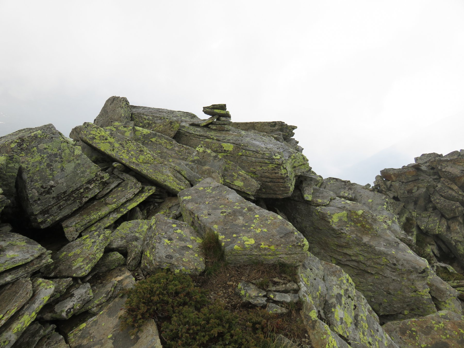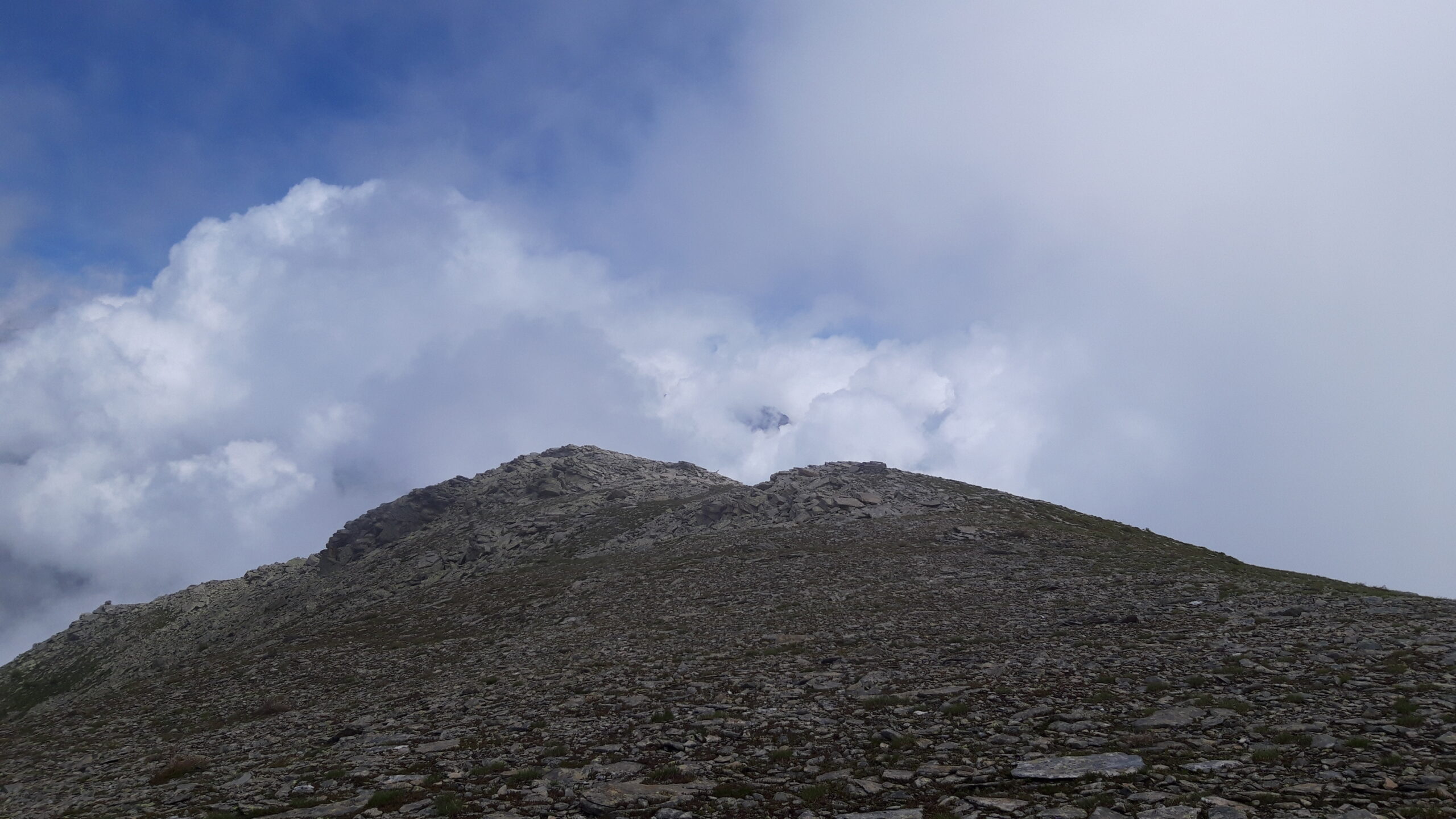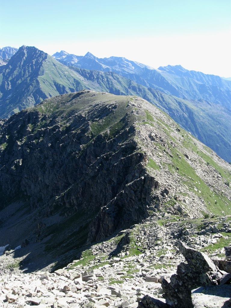 Sulla cima il classico triangolino cai Rivarolo,dalla bocchetta del vallone 2414 m andando a dx per facile e bella cresta si raggiunge facilmente la Testa di Deserta o Monte Giaset 2471 m.