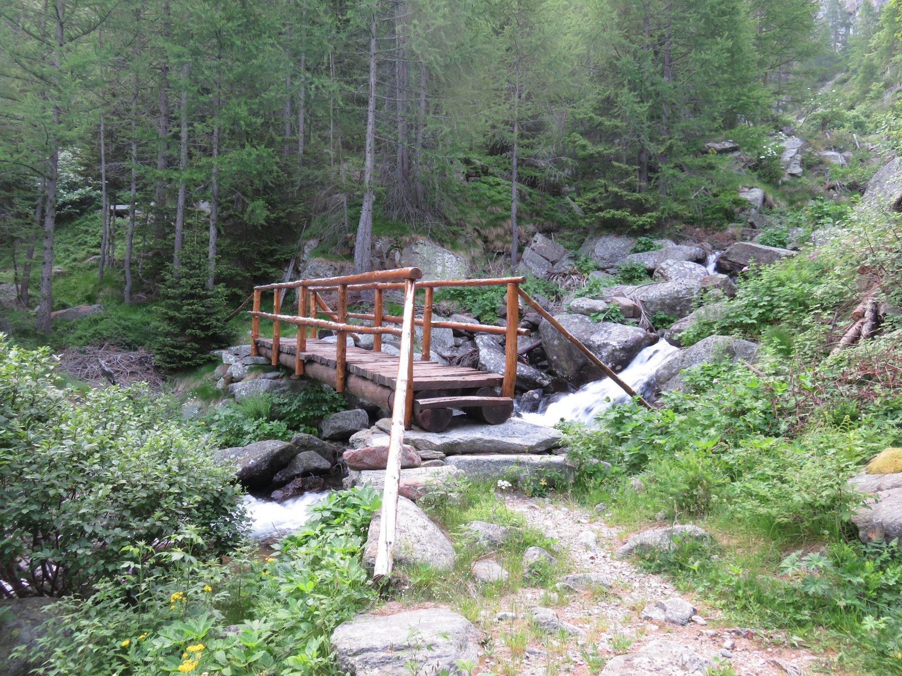 Si passa il Rio Pian Pesse su ponte in cemento e tubi 1681 m e si arriva al bivio che conduce alla diga.