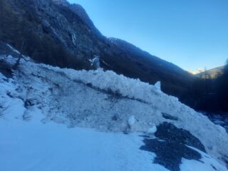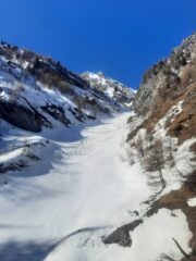 Canale e vallone sottostanti piuttosto larghi; qua e là qualche valanga che invade solo parzialmente il canale.
