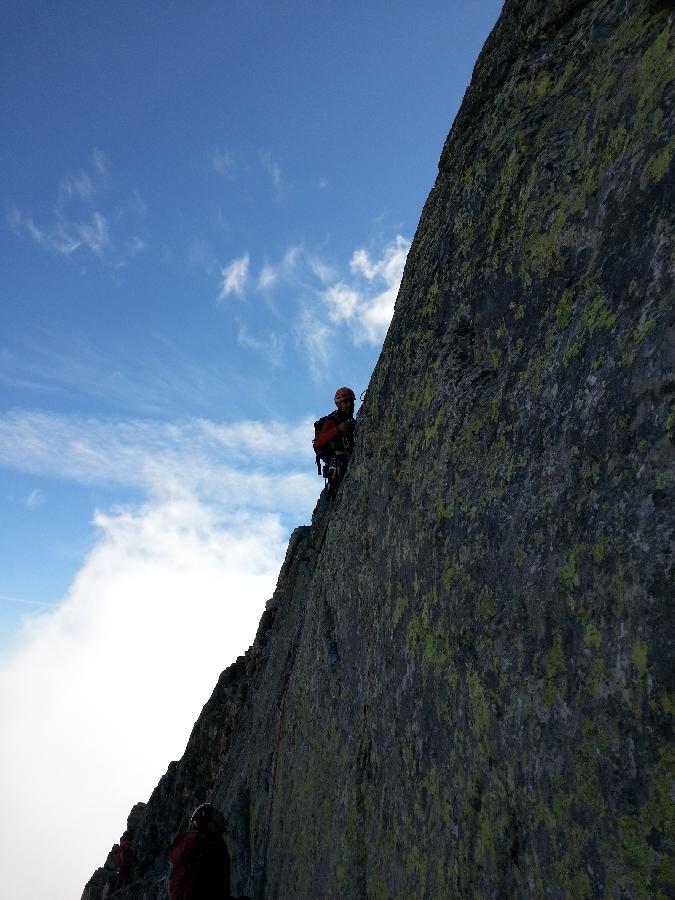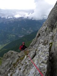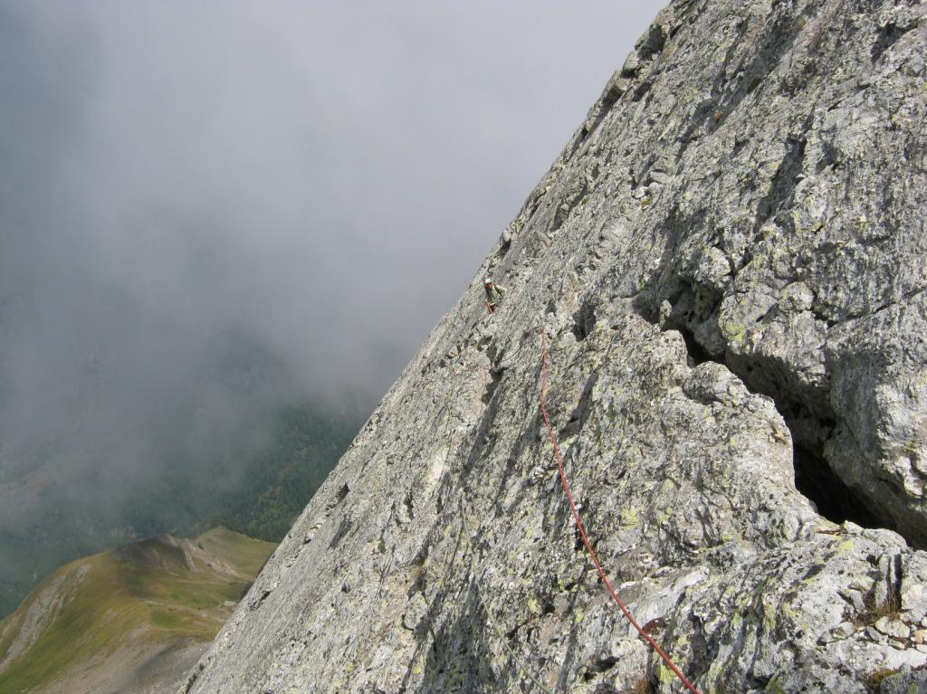 L1: dritti sullo sperone, 45m, 3° e 4° (1fix, 2 chiodi)