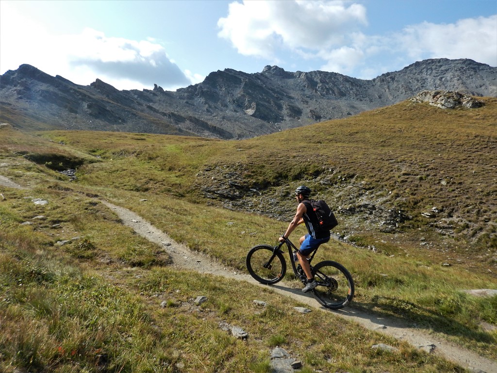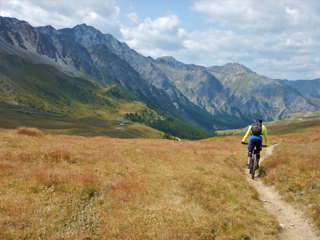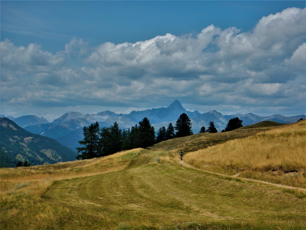 A distanza di un anno ritorniamo su questo percorso, partenza tranquilla dal Pont de Lariane, poi salendo vento sempre più teso con folate molto forti oltre il Col Chamoussière. Dalla cima sud del Pic Caramantran al colle di St. Veran non facile governare la bici per le forti raffiche, poi nell’Aigue Blanche discesa piacevole. All’altezza di N.D. de Clausis imboccato il sentiero balcone del Gran Canal che conduce, su traccia a tratti un pò esposta, sopra St. Veran. Di qui rientro per la bella forestale al Pont Lariane.