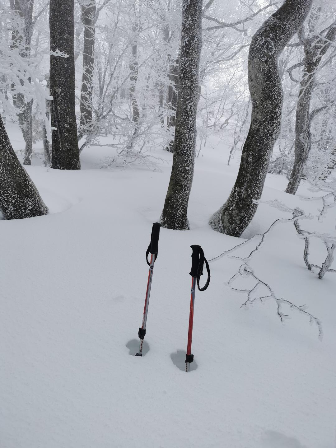 nevicata appena cessata , neve fredda e polverosissima, nessuno in giro . – 6 alla partenza vento debole moderato . battuta traccia e ripellato .In tutto 800 metri di pura goduria nel bosco con visibilita’ buona