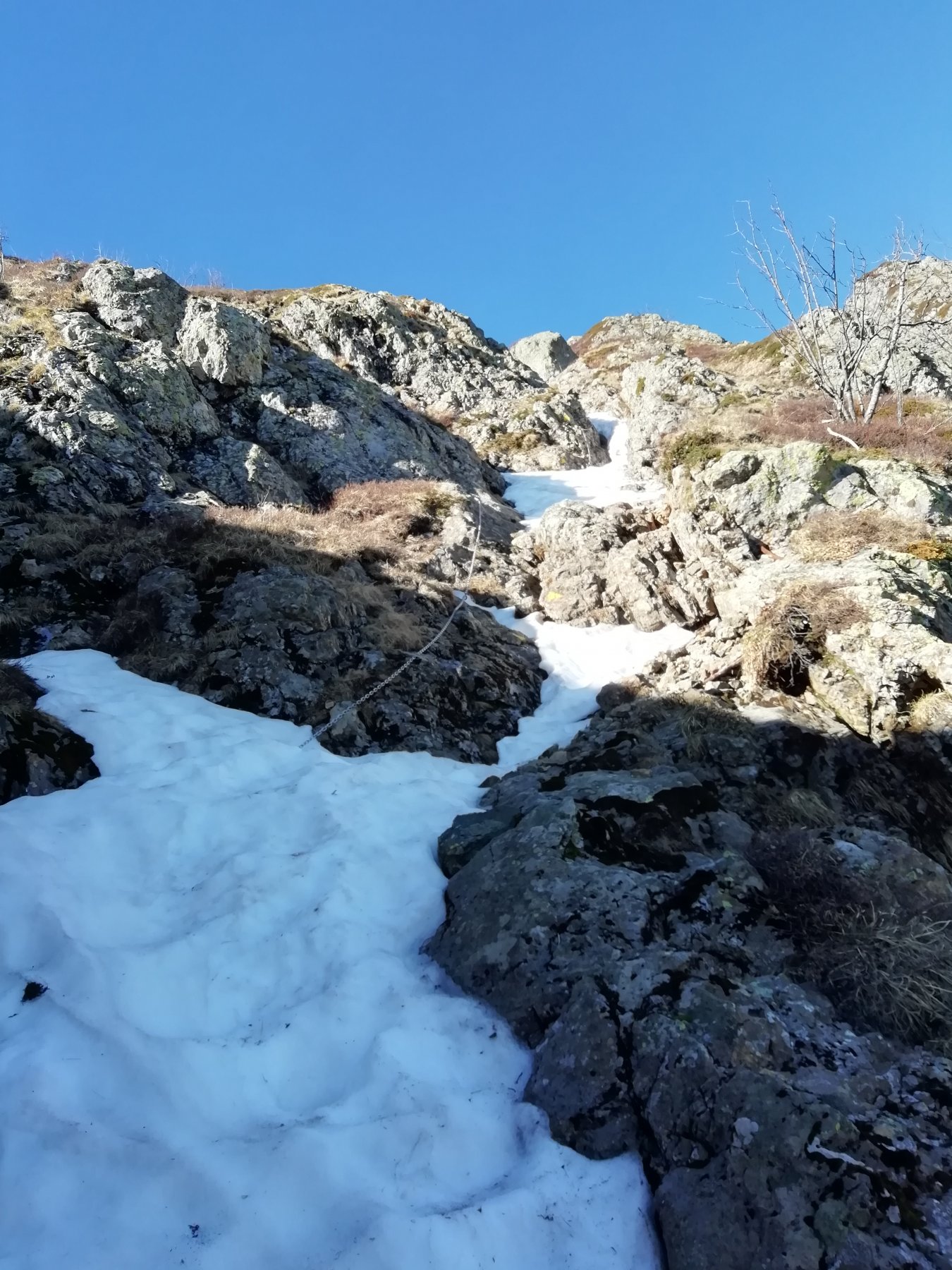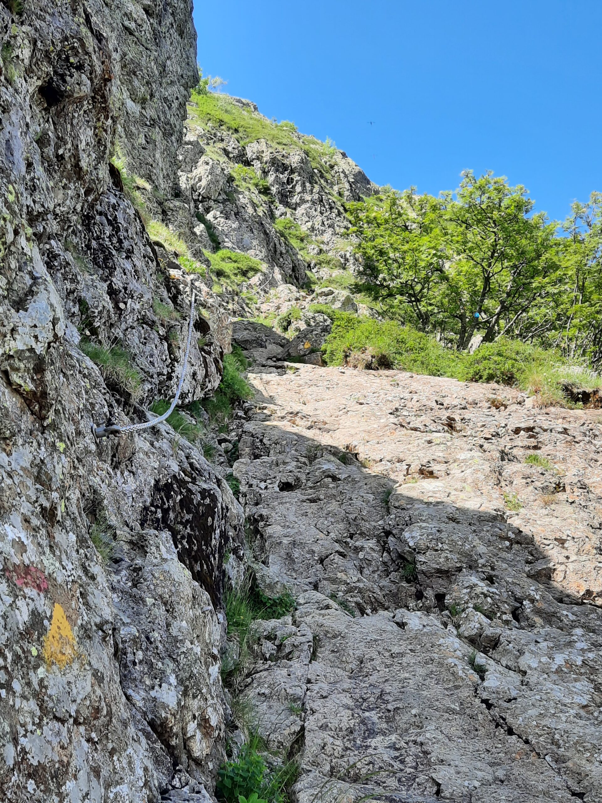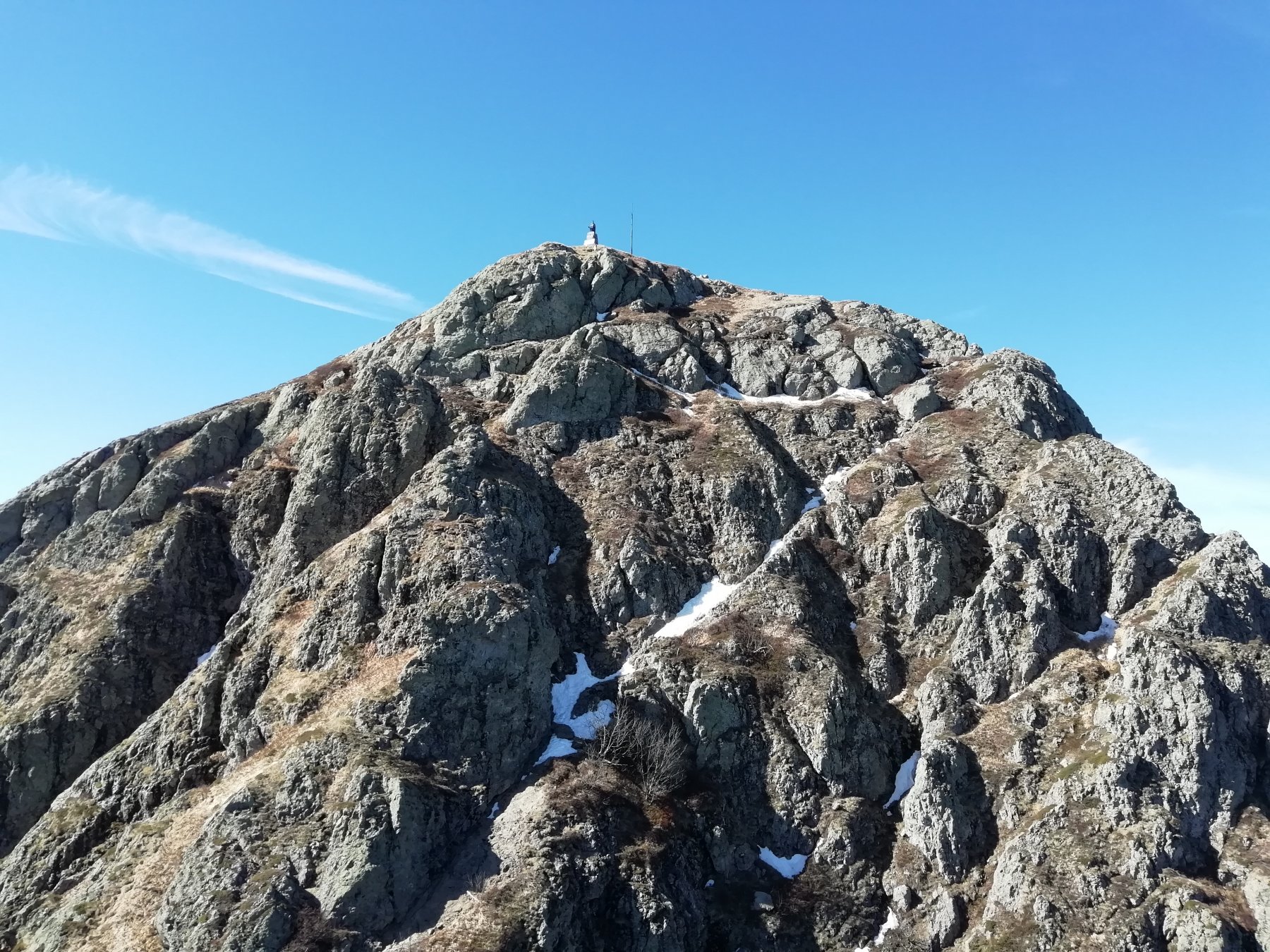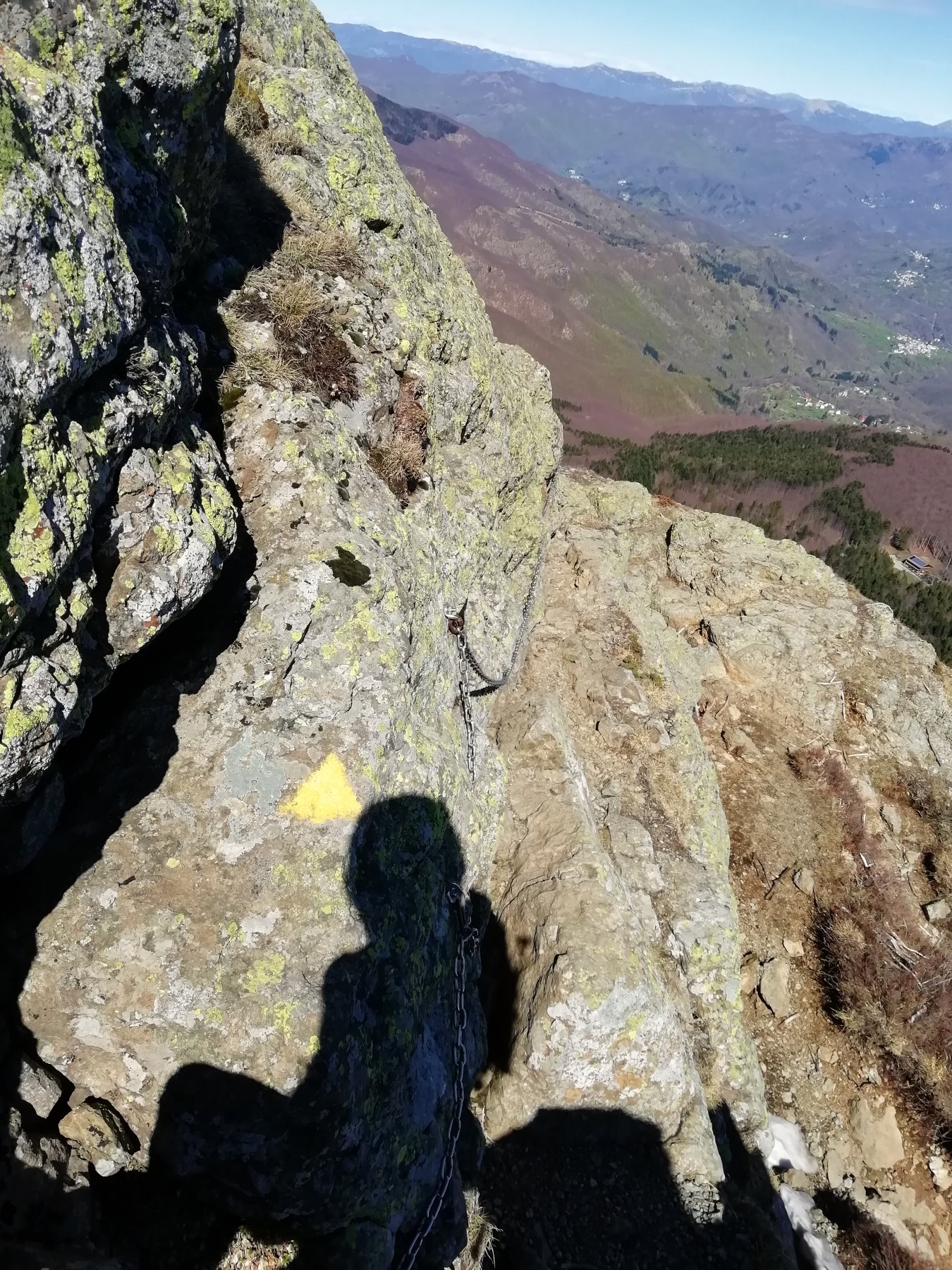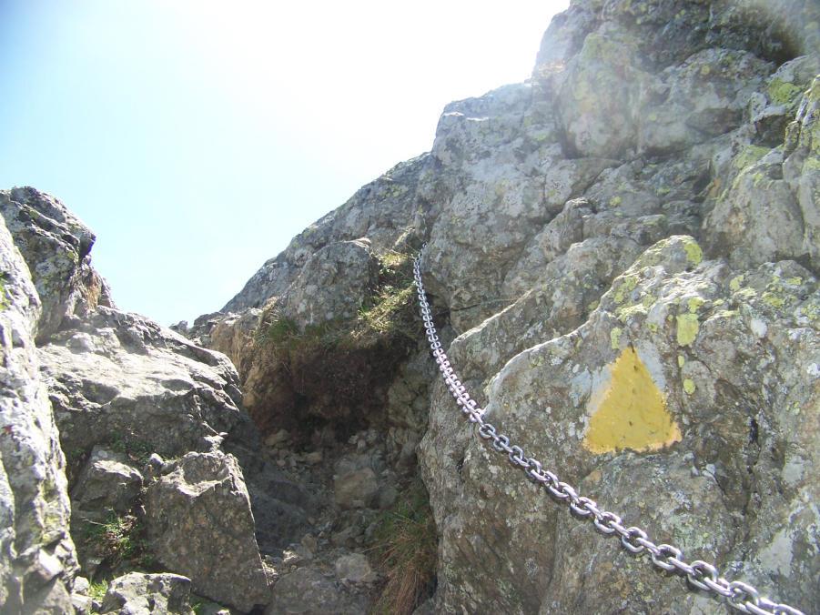 Ci sono passaggi (poco) esposti sotto la vetta, con catene fisse.