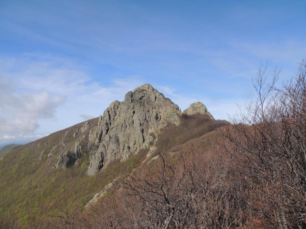 Si prosegue per cengie facili attrezzate con catene fino alla statua in vetta. Dalla vetta si può ritornare più facilmente per il sentiero verso ovest nel bosco fino al passo dell’Incisa, dove una strada forestale riporta alla Casa Forestale. Senza fretta, ci vuole un paio d’ore.