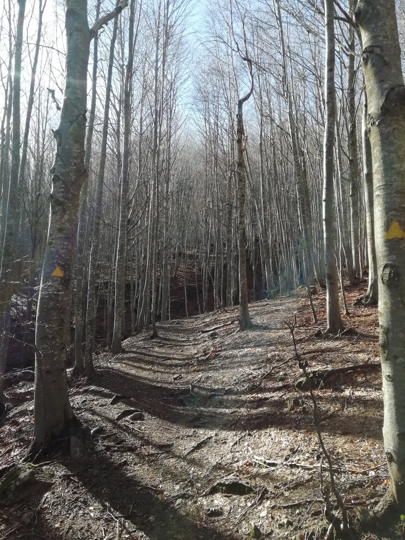 si parte dalla strada principale, seguendo l’indicazione Monte Penna ed i segnavia gialli ben visibili sui faggi.