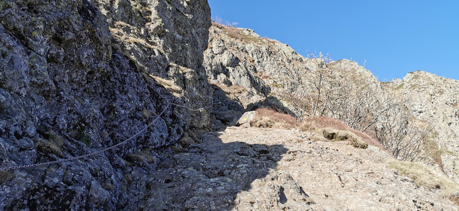 Si costeggia il M. Nero fino a giungere a una sella, da cui inizia una dolce discesa su sentiero un po’ sconnesso, fino a raggiungere un crocevia. Si evita il sentiero il sentiero che porta a Prato Mollo e si prosegue verso il Passo della Spingarda, che si raggiunge dopo pochi minuti. Dal Passo della Spingarda si prosegue in direzione WNW lungo l’Alta Via dei Monti Liguri, lungo un sentiero tra le rocce molto ben segnalato, fino alla vetta dell’Aiona (raggiungibile in 30 minuti dal Passo con una deviazione dall’Alta Via di 5 minuti). Anche dal M. Aiona la vista è vastissima.