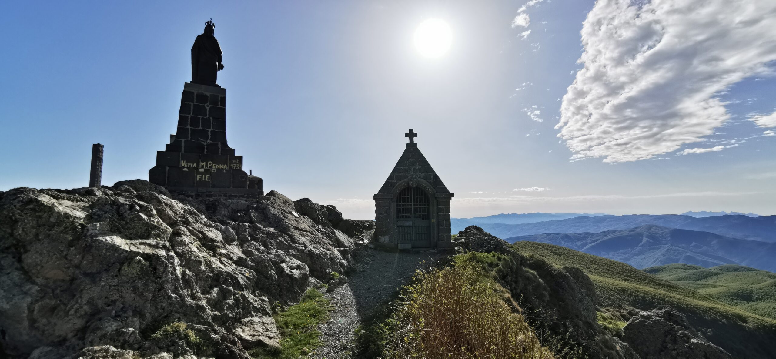 Prima di giungere alla sella si tralascia un bivio sulla sinistra che porta alla Nave del Penna e quindi al Passo del Chiodo. Il sentiero continua a salire fuori dal bosco affrontando la parte rocciosa del M. Penna attraverso una larga cengia attrezzata. Nel tratto finale qualche facile roccetta attrezzata conduce fino alla vetta, dopo 1.15 ore di cammino. Dalla vetta si gode una ottima vista a 360°, che spazia dalle Alpi alle Apuane, dai monti dell’Appennino Ligure fino alla Corsica nelle giornate terse. In vetta è presente una piccola cappella e una statua della Madonna.