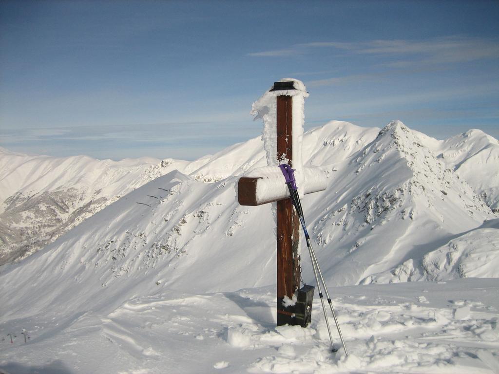 Il vento da SO ha lavorato incessantemente nelle ultime24 ore, creando pericolosi accumuli sui versanti opposti. Ho deciso appunto di salire a fianco delle piste del Tenda fino al colletto che collega la valle di Limonetto. Da quì ho seguito la strada a sx passando sotto il Forte Centrale, per raggiungere il crinale di confine, che ho percorso fino alla vetta.Il vento (-11°) ha scoperto molti tratti ghiacciati, per questo ho avuto qualche difficoltà con gli sci in alcuni tratti di misto un pò esposti.Discesa per il colletto Campanin e vallone Cabanaira, con un pò di timore,nella polvere fino al cavallo dei pantaloni.