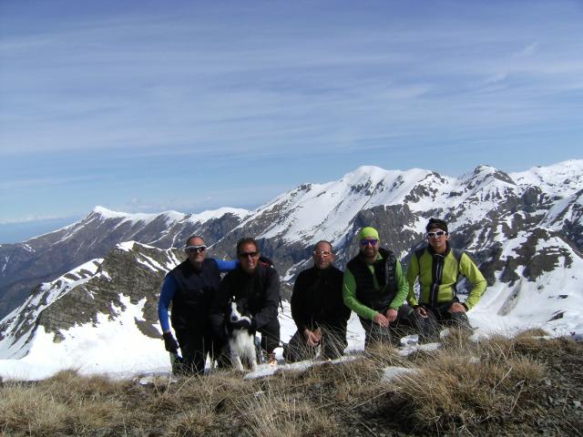 Oggi con i due Davide, Andrea e Paolo con Argo al seguito. Parecchi altri skialper su questa cima saliti da più itinerari