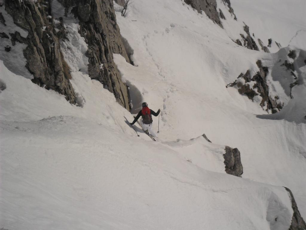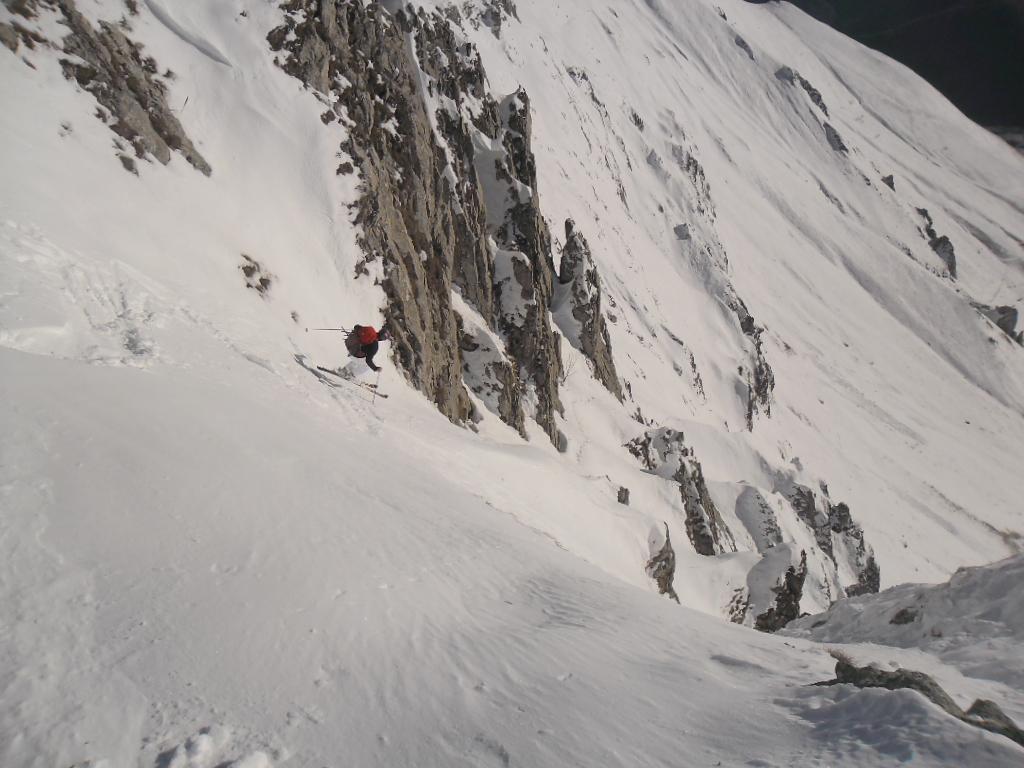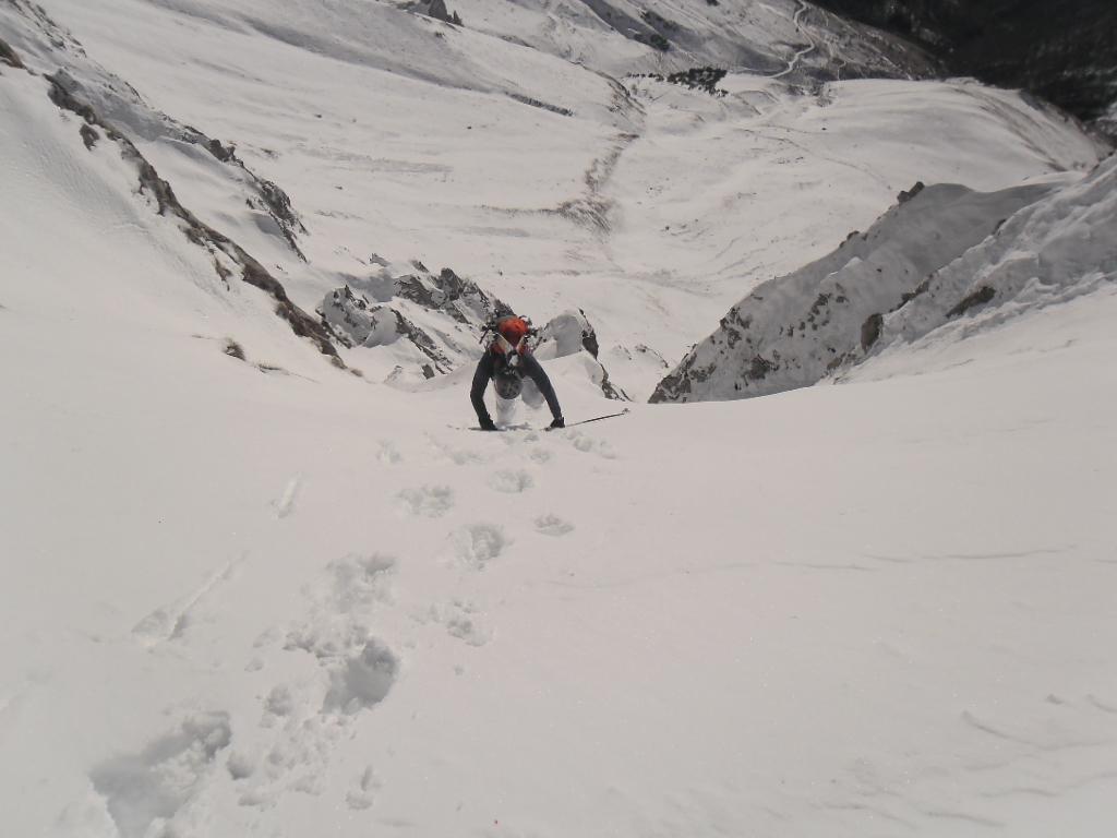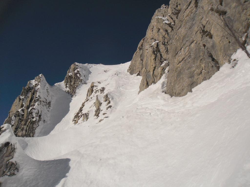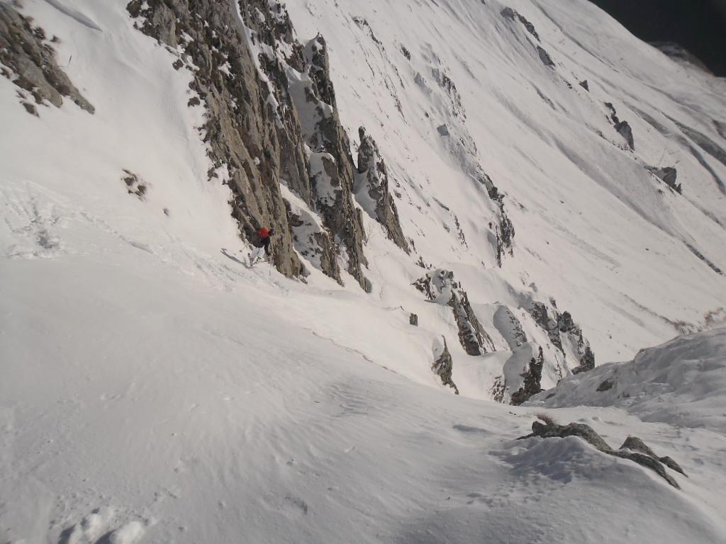 300m tra i 40°-50° con un passaggio-quasi mai innevato-sui 60°-65° per 4-5 metri