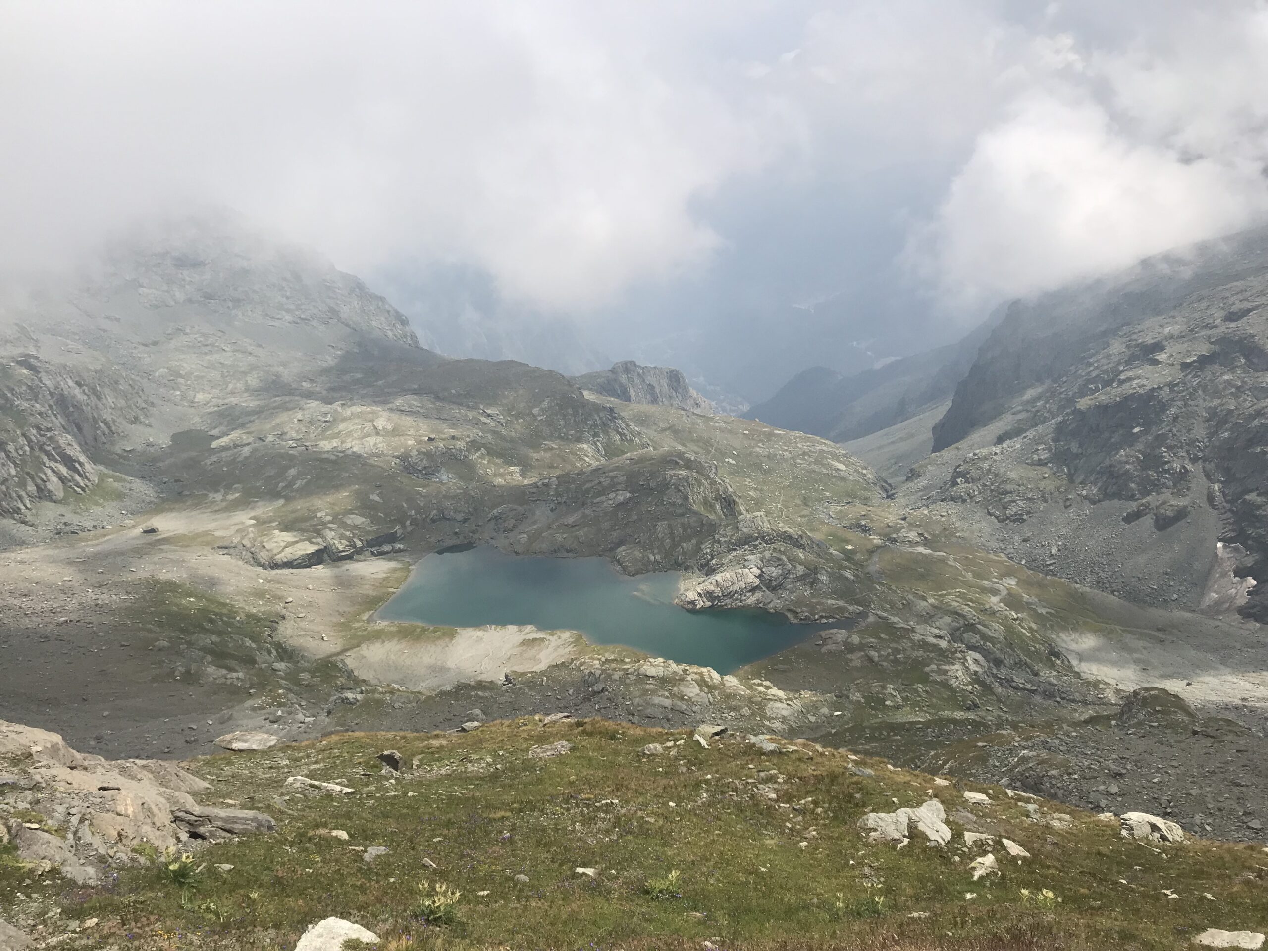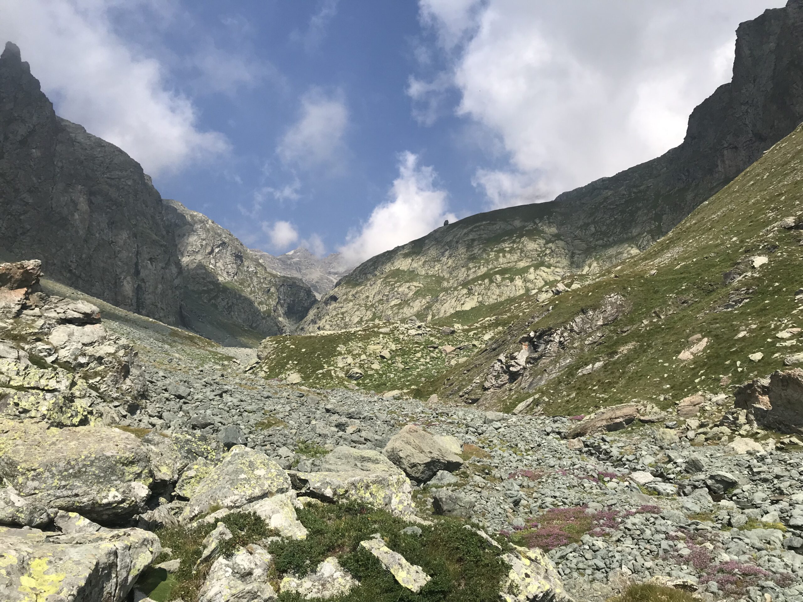Dal rifugio in vetta il sentiero è piuttosto ripido (ultimo tratto EE) , ma si insinua in una splendida morena in ambiente selvaggio circondata dalla Croce Rossa, il Monte Lera, il Sulè ed altre cime che superano il 3200 metri di altitudine.