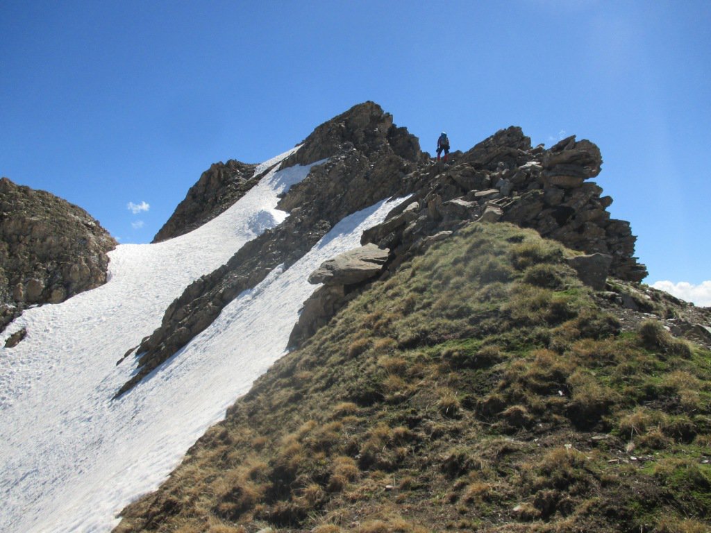 Usciti in cresta con facili passaggi si punta verso ovest a sinistra e dopo breve tratto di rocce instabili si arriva in vetta.