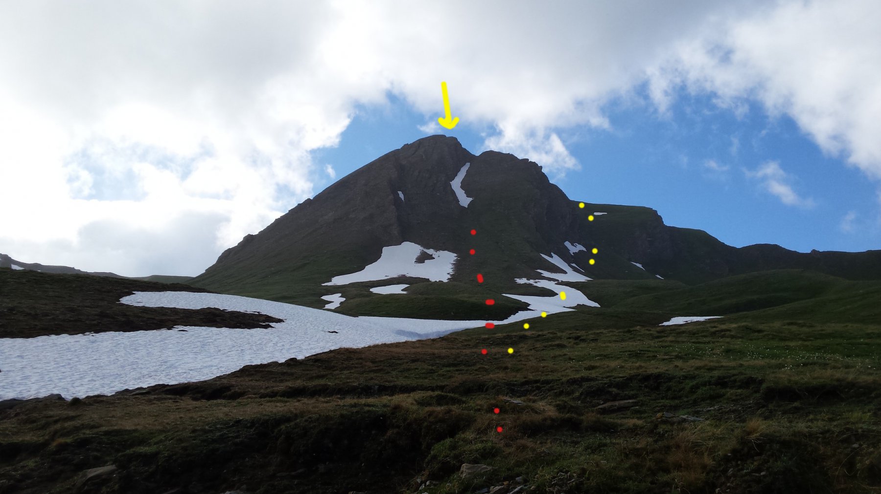Giunti ad un bivio, salire a destra e dopo due ampi tornanti si perviene all’alpe di Chavannes di sopra (2421 m). Salire ora i pascoli soprastanti con direzione nord, puntando alla cima già ben visibile.