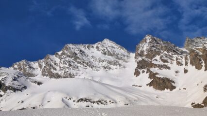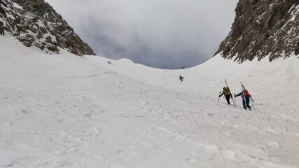 Partiti verso le 7 dall’auto. Portage su sentiero sino a circa 1900 m. Calzati i coltelli quando le pendenze iniziano ad aumentare. Ramponi e sci in spalla per gli ultimi 200 m.