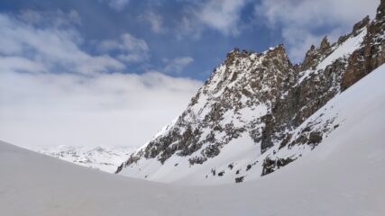 Purtroppo come era previsto le temperature rigide non hanno fanno mollare la neve nei pendii sotto il canale. Sciata comunque piacevole dato il fondo liscio.