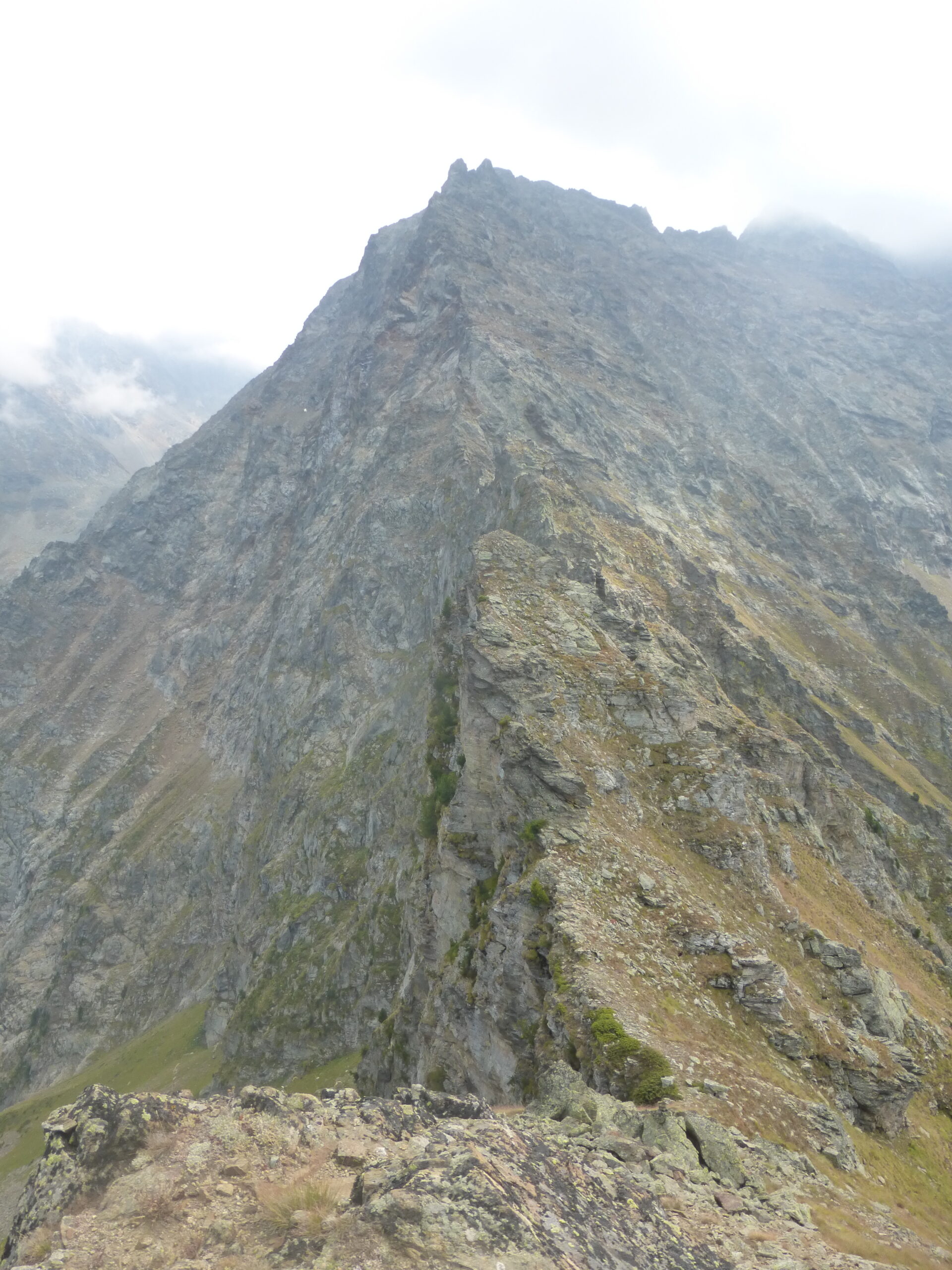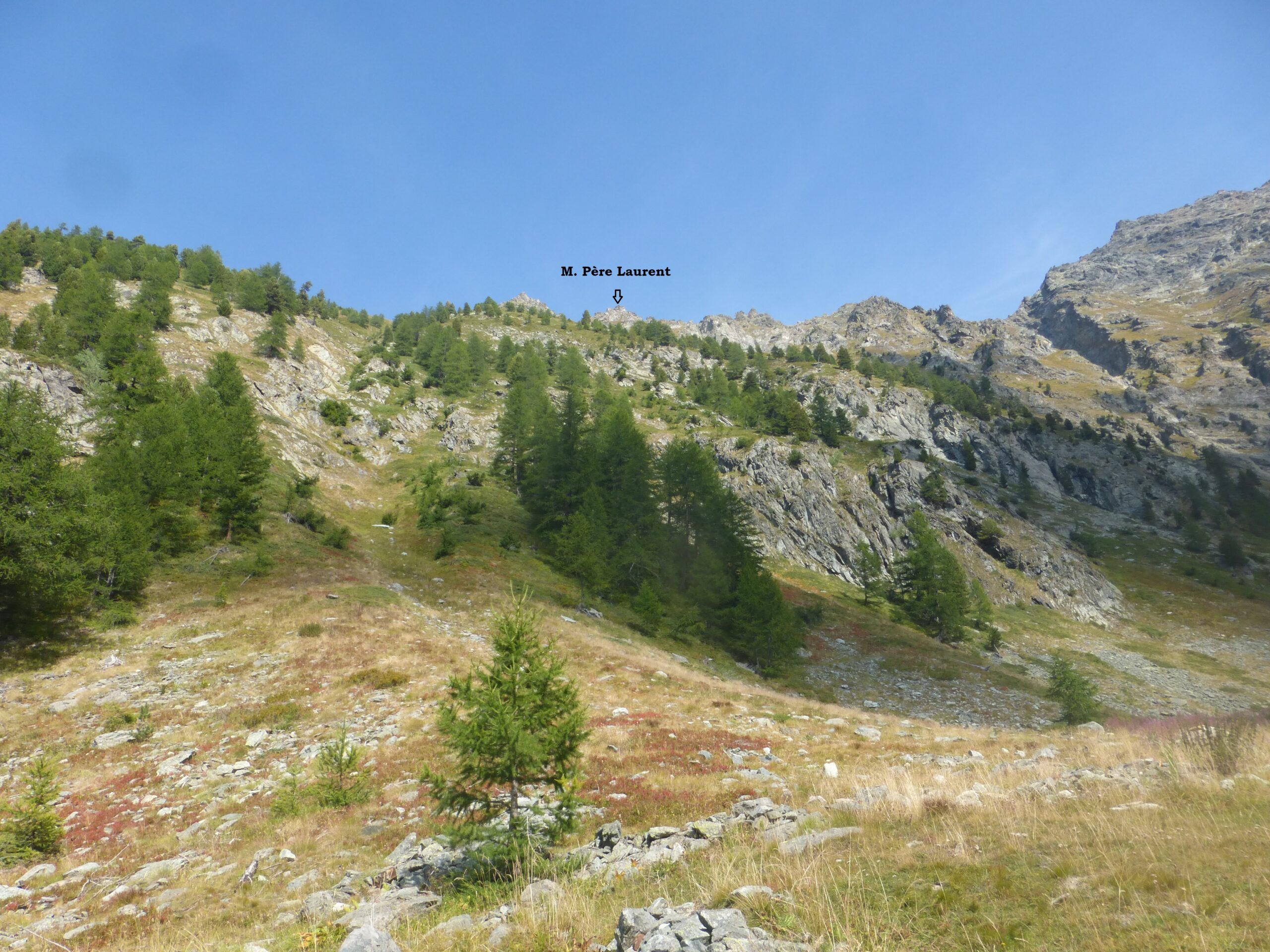 Dopo circa 400 duri metri di salita si sbuca sulla spalla ai piedi della cima; un ultimo tratto di nuovo ripido conduce velocemente sulla cima dalla quale si ha un impressionante colpo d’occhio anche sul sottostante vallone di Laures.