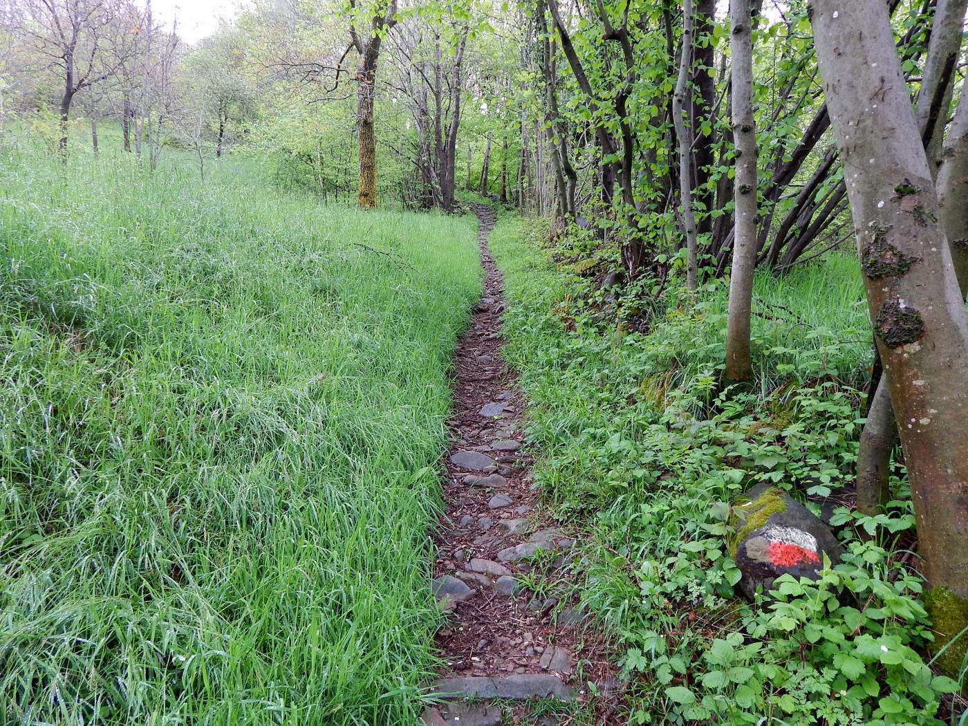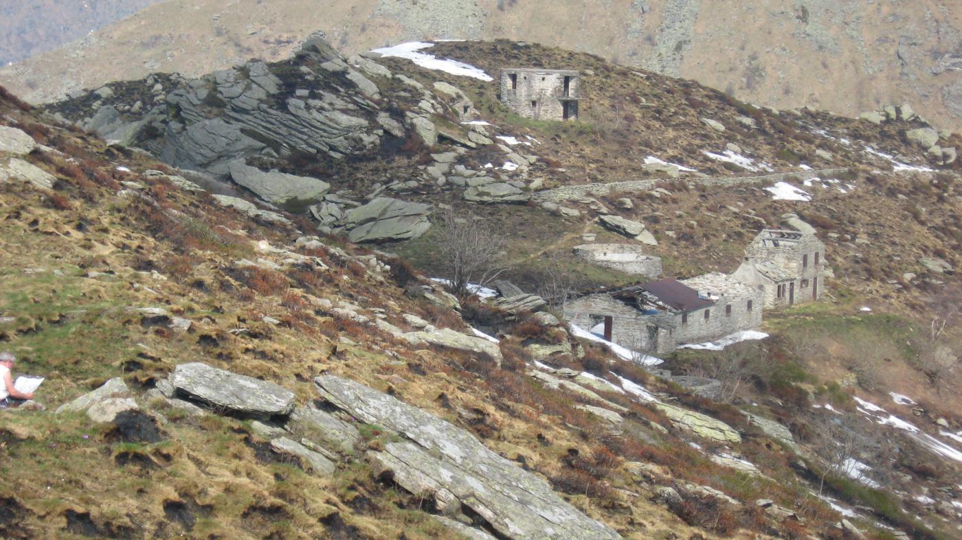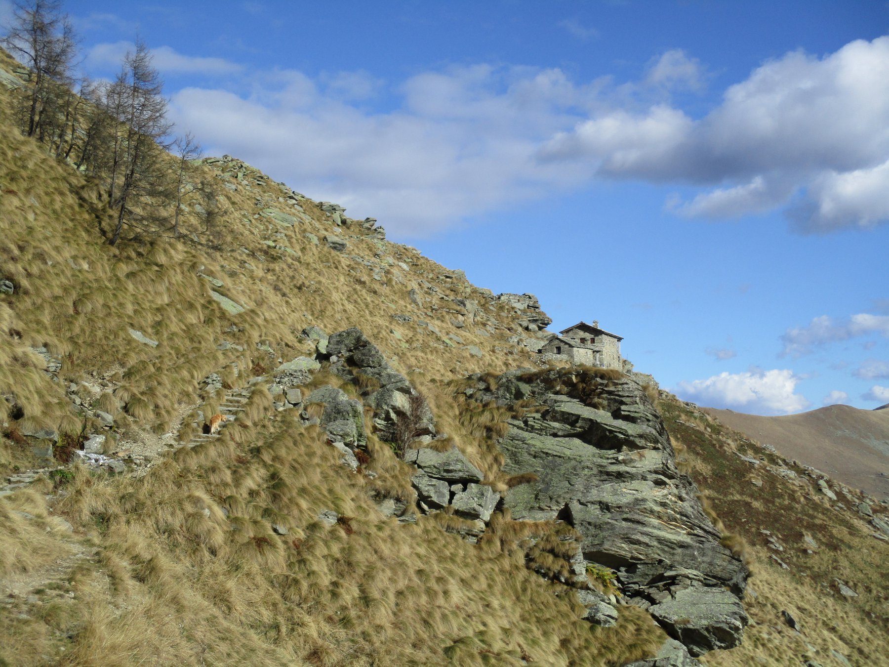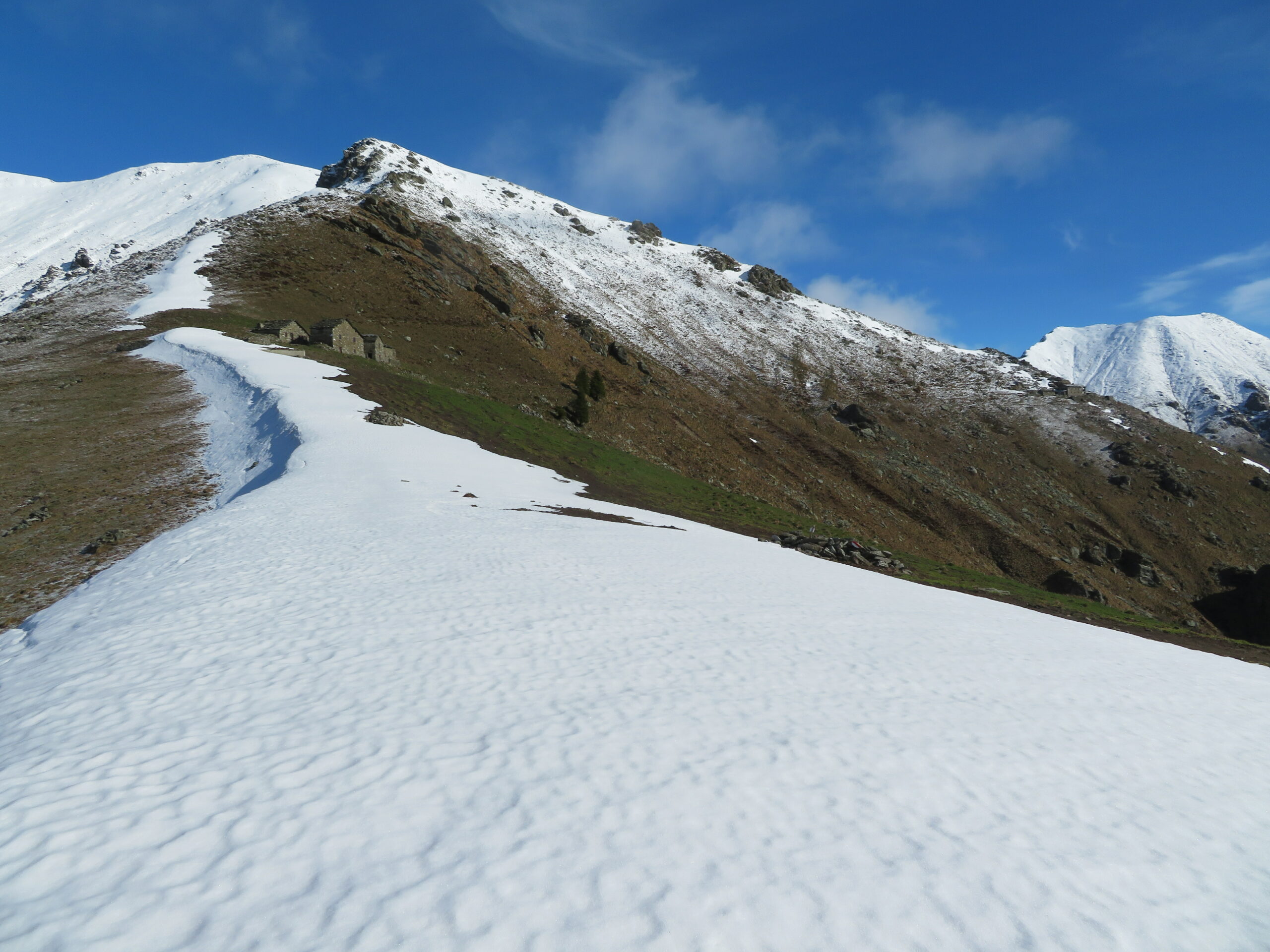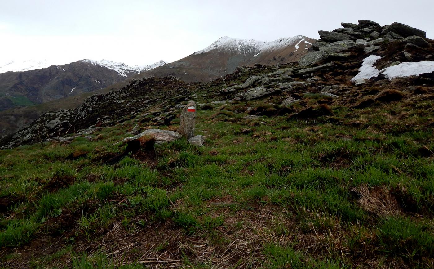 Continuare a sinistra sulla strada sterrata che sale, sino a poco prima che termini. Svoltare a sinistra in direzione nord-ovest (vecchio segno rosso) su buon sentiero, che procede in direzione nord-est sino a raggiungere Punta Prarosso 1497 m.