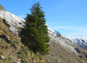 Per arrivare al Peretti Griva si sale sul sentiero 413. Poco dopo la partenza, in prossimità dell’attraversamento della sterrata che taglia il sentiero, ci sono due alberi caduti, superabili lateralmente. Anche la neve presente all’Alpe Frigerola non crea nessun problema . Sempre una bella escursione al cospetto del Vaccarezza.