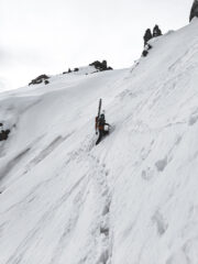Il caldo assurdo previsto ci ha costretti a partire alle 4 da Chialvetta. Si passa abbastanza continuamente dal bosco fino a Viviere, poi neve continua e molla fino a sotto il conoide del Cobre. Incredibile la totale assenza di rigelo fino a 2200m. Canale perfetto in salita e uscita in vetta fantastica, un panorama a 360° su tutta la Valle Maira! Iniziamo la discesa per le 9.30 e troviamo la prima parte del canale un pochino duretta (gonfia da vento presente, non mi sono fidato a sciarla per quanto la neve sembrasse compatta) poi sciatona su 20 cm di farina ventata. Fino a Prato Ciorliero abbiamo sciato su “un firn che non ci ha creduto abbastanza” complice lo scarsissimo rigelo. Poi neve bagnata e ravange in discesa per il bosco fino a Chialvetta. Nel complesso bella sciata inaspettata in alto e gita di grande soddisfazione.