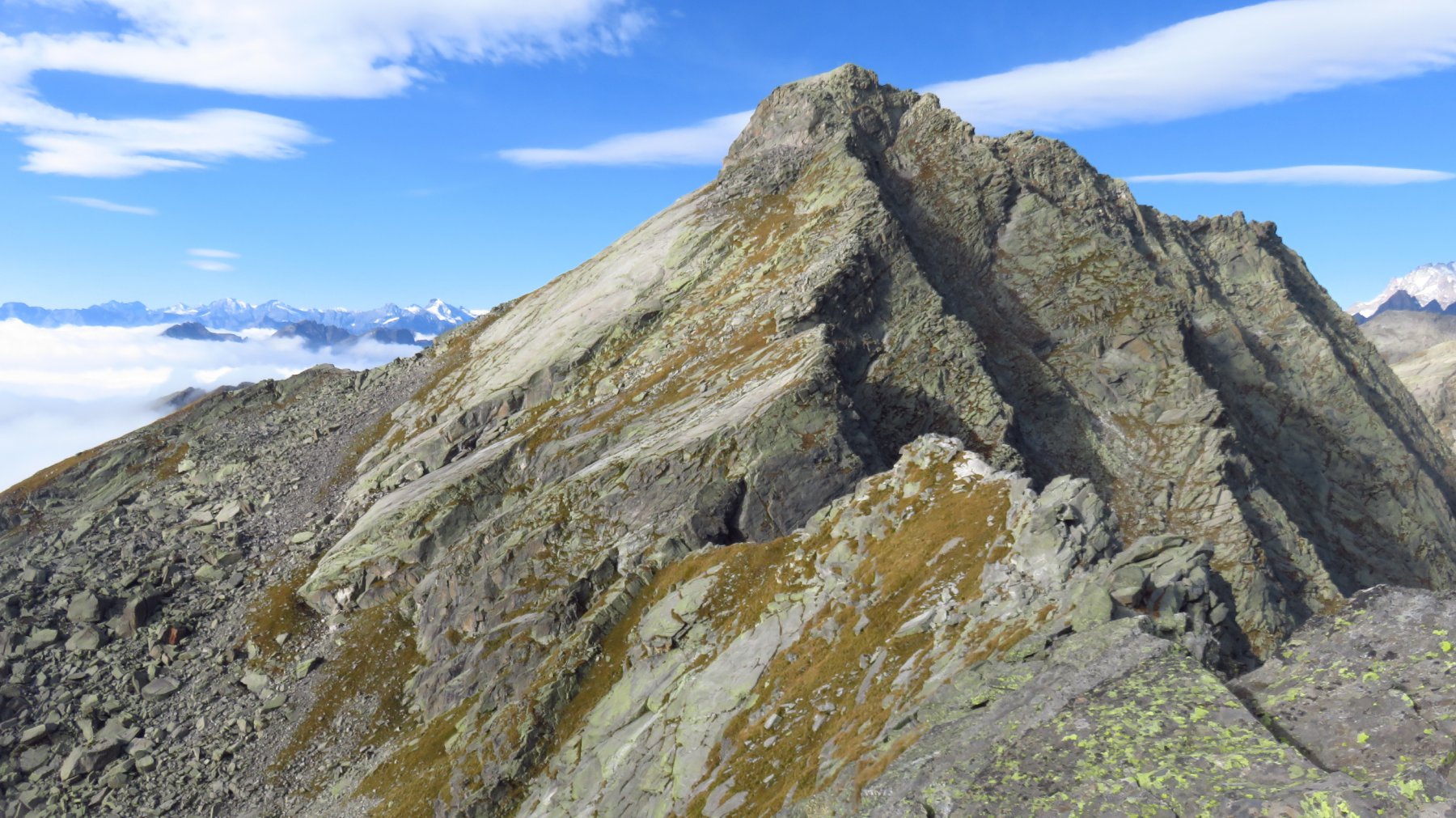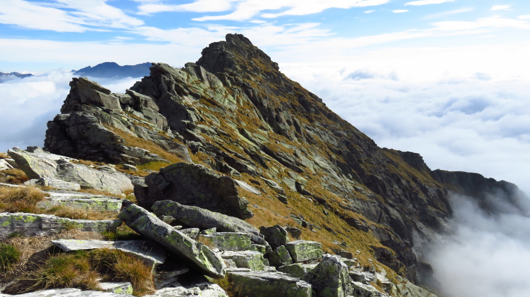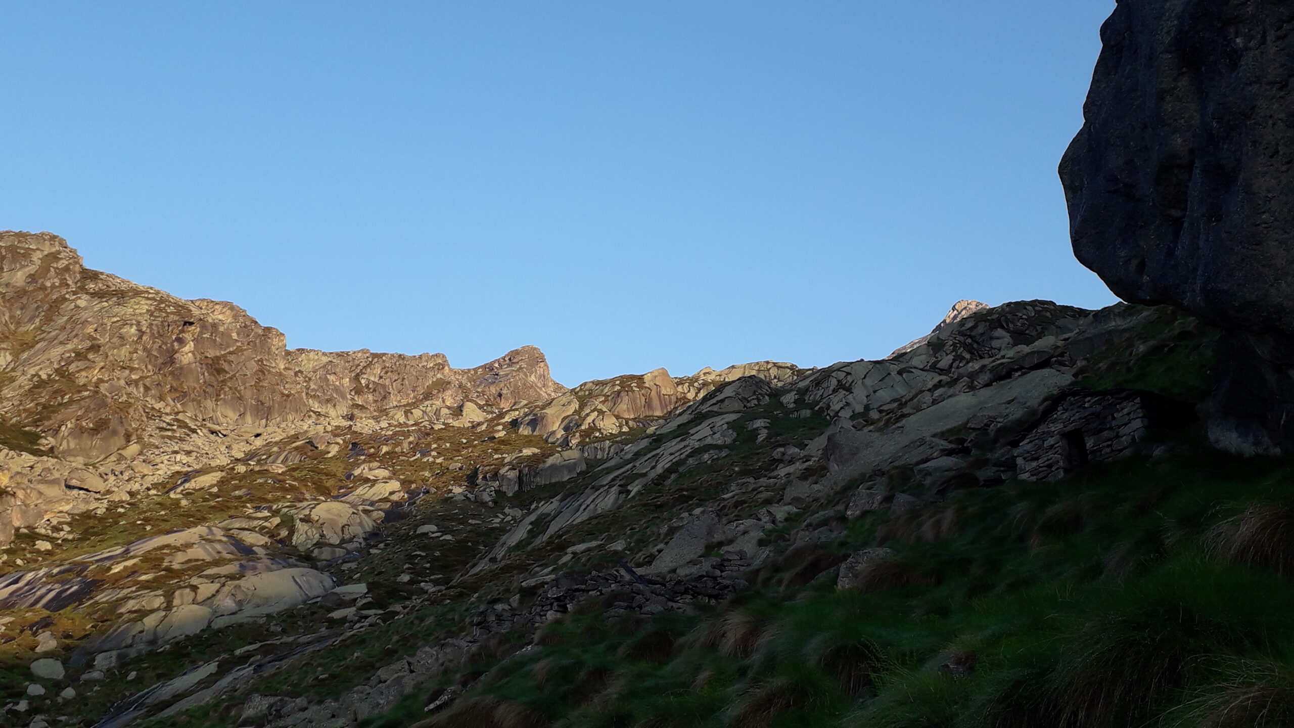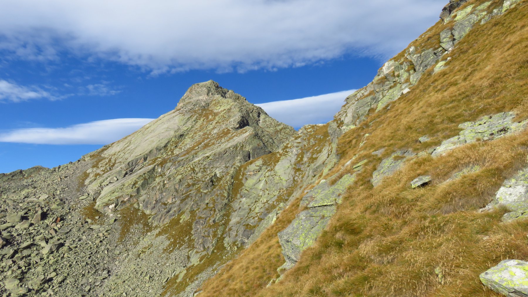 Proseguire verso nord-nord/ovest costeggiando un piccolo rigagnolo per pochi minuti fino a 1835 m, poi piegare a sinistra per raggiungere in poco tempo l’alpeggio Mut mezzo diroccato 1885 m. Da qui in avanti non c’è più alcuna traccia di sentiero e ci si muove su pascoli erbosi con numerosi sassi che rendono un po’ difficoltoso il passo.