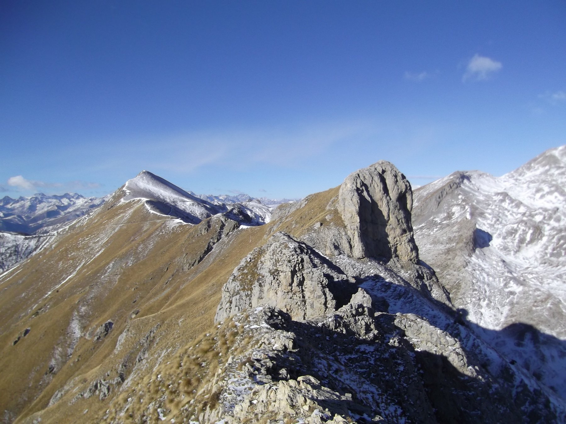 E’ consigliabile percorrere l’anello in questo senso, perché la cresta offre notevoli scorci panoramici, mentre la discesa dalla cima al Colle Selle Vecchie è piuttosto ripida e priva di sentiero (faticosa in salita).