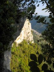 Variante al percorso descritto. Da Finalborgo in mtb, a dx ben prima di Calice su asfalto subito ripido, poi sterrata agevole e che prende quota rapidamente con diversi tornanti, portage su sentiero spettacolare che percorre una cengia ascendente tra due falesie e spunta ad un colletto molto panoramico. Lungo traverso divertente e in falso piano fino all’ultima breve impennata (mtb abbandonata in un cespuglio). Escursione breve ma merita, dal colletto in discesa qualche tratto ciclabile fino alla sterrata, di più è rischio ortopedico..