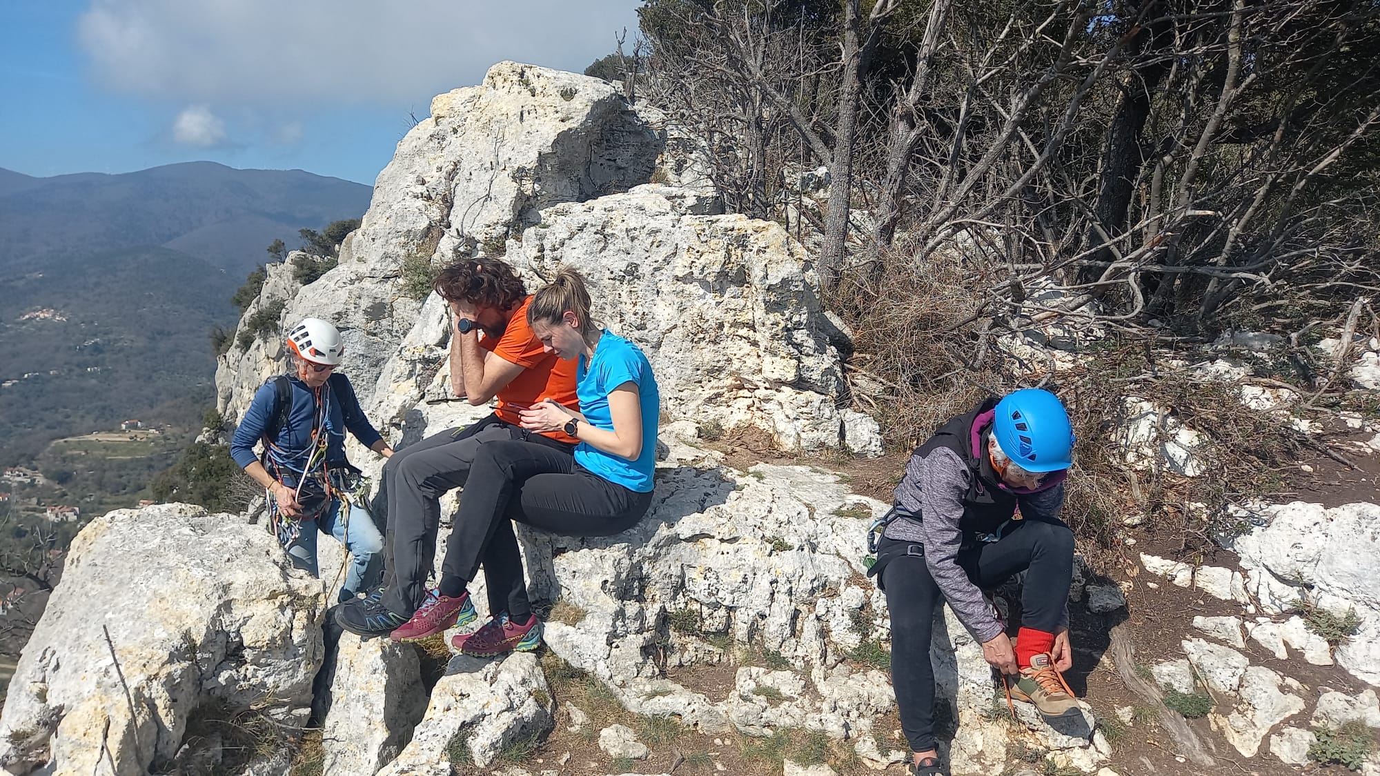 Uscita sociale del Gams su una delle “classiche” di Rocca di Perti. Via molto bella, peccato un po tanto unta. Soste con catena o su alberi.