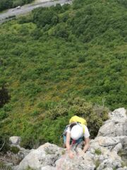 Spigolo plaisir ottimo per chi inizia ad arrampicare. Una sola sosta alla fine del tiro di III grado. Uno spit sul muretto di III+. Via molto discontinua