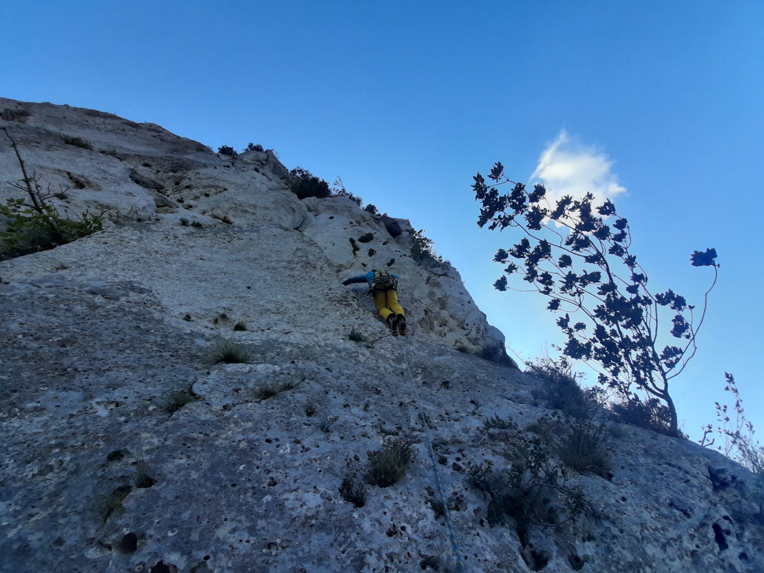 I tiri sono molto corti, sui 20m ciascuno (noi non abbiamo unito nulla), chiodatura a resinati plaisir (non serve assolutamente integrare), soste su due resinati da collegare (tranne L5) a mio avviso meritano solo L1, L4 e L5.