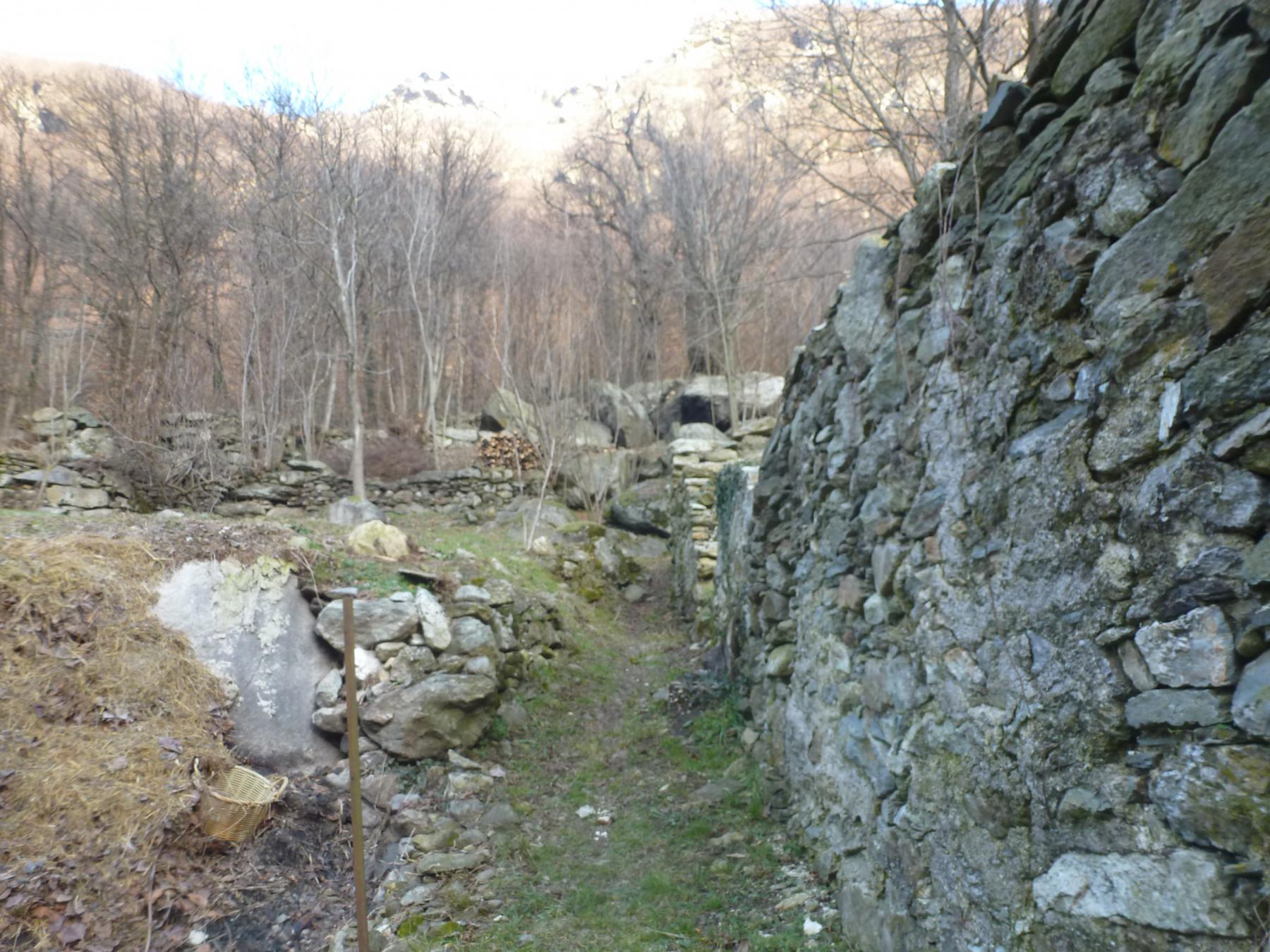 salendo dietro alla chiesetta di bosco si trova la mulattiera segnata di rosso che sale ripida ma bella fino a circa 800m. poi effettua un traverso a dx e raggiunge l’alpe vignetta a 935m. salendo dietro all’alpe in breve si arriva ai 1037m dell’alpe case st. giovanni e seguendo l’evidente sentiero inoltrandosi in un bel bosco di faggi ecco il castello di pertià.