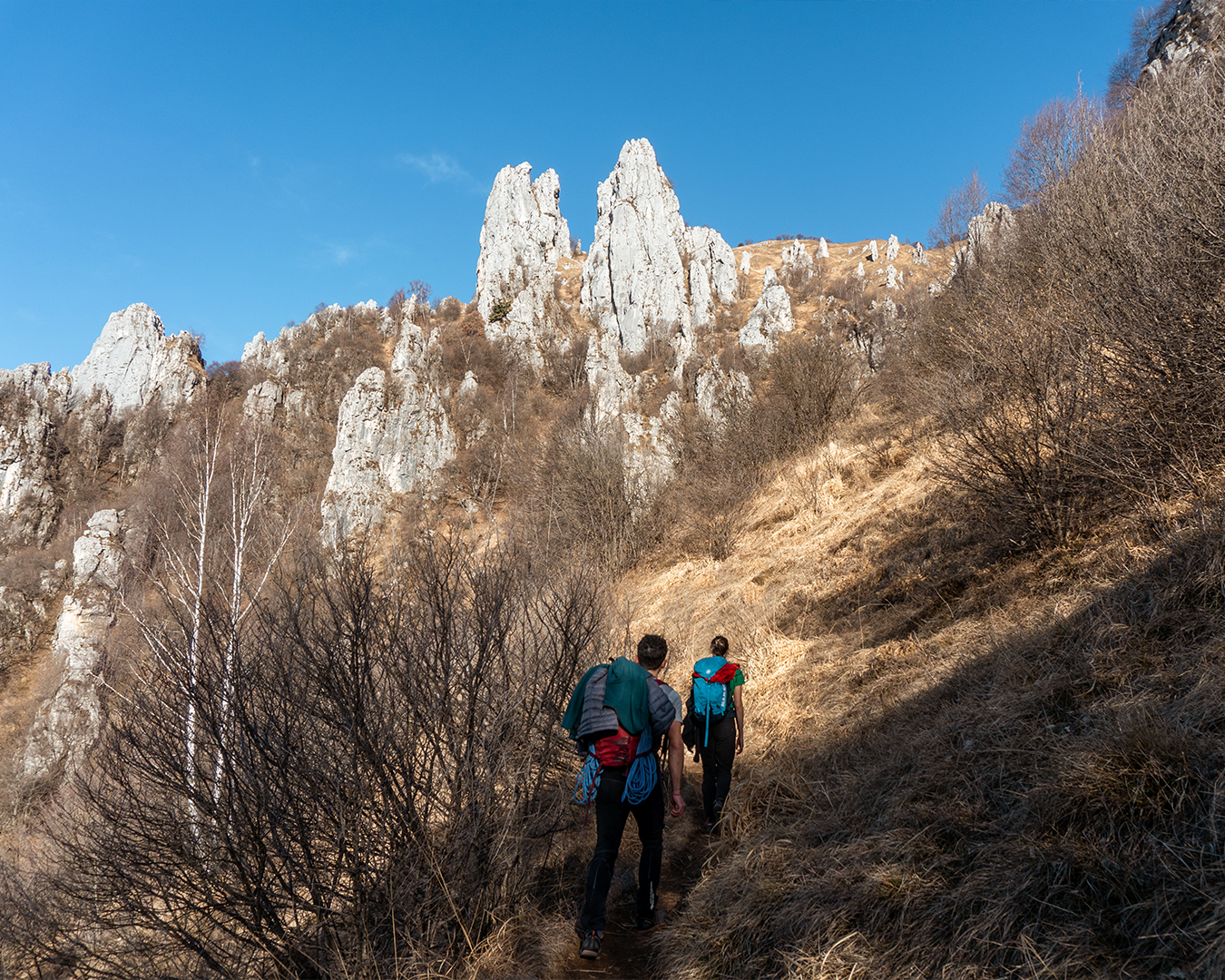 Seguire la cresta sino alla cima più alta (pochi metri). Scendere di alcuni metri e calarsi lungo un canalino terroso sulla destra sino ad un sentierino che in breve riporta alla base.