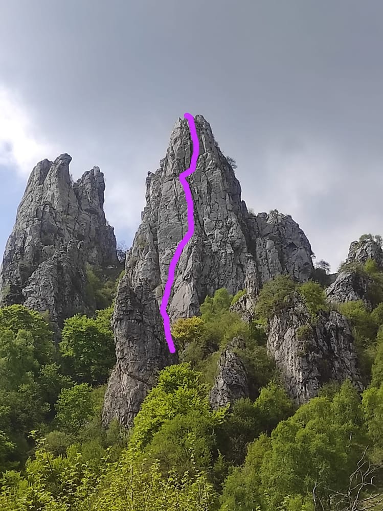La chiodatura è discreta e facilmente integrabile con friend (la roccia è molto fessurata). Le prime due lunghezze di corda sono in comune con la via Renata.